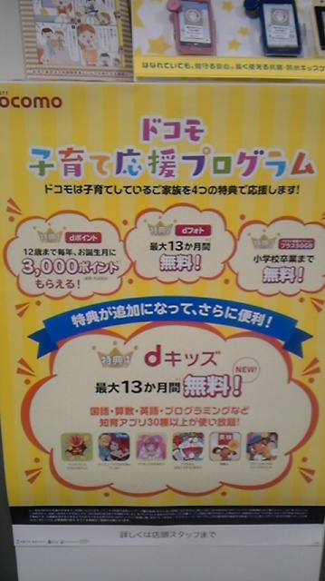 お子様が12才になるまで毎年3000ポイントのdポイントをプレゼントしております(^○^)♪
