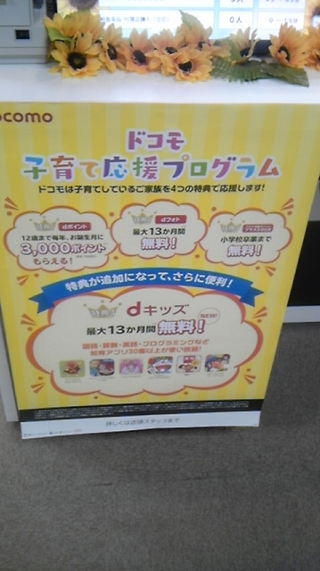 お子様が12才になるまで毎年3000ポイントのdポイントをプレゼントしております♪