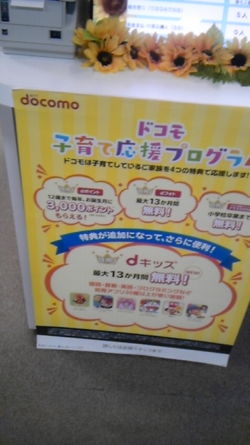 お子様が12才になるまで毎年3000ポイントのdポイントをプレゼントしております♪