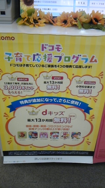 お子様が12才になるまで毎年3000ポイントのdポイントをプレゼントしております(^○^)♪