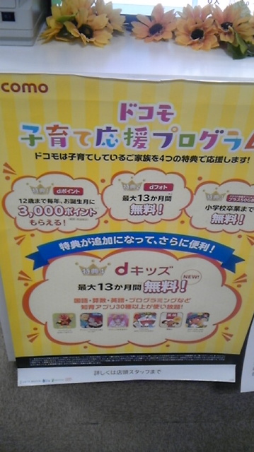 お子様が12才になるまで毎年3000ポイントのdポイントをプレゼントしております(^○^)♪