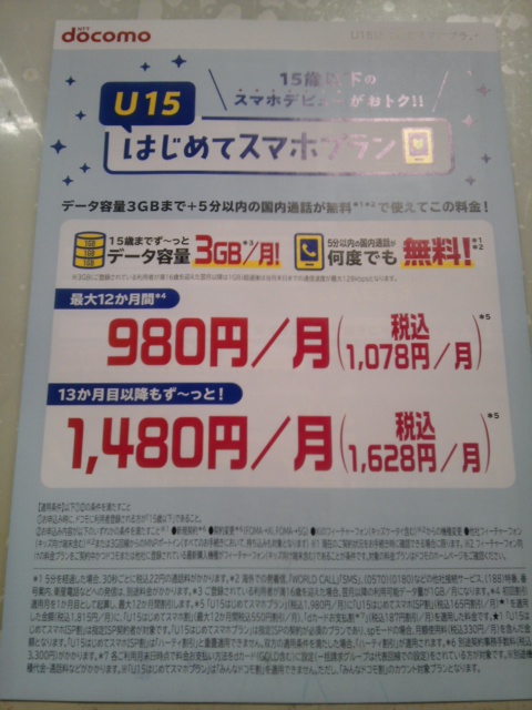 7月7日よりドコモのアンダー15はじめてスマホプランがスタートしました(‘◇’)ゞ