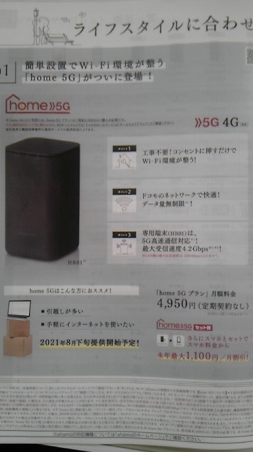 コンセントに差すだけ、工事不要!でドコモのネットワークでWi-Fi環境ができる「home5G」!
