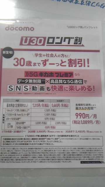 そしてU30ロング割引で新規契約、機種変更やプラン変更も対象