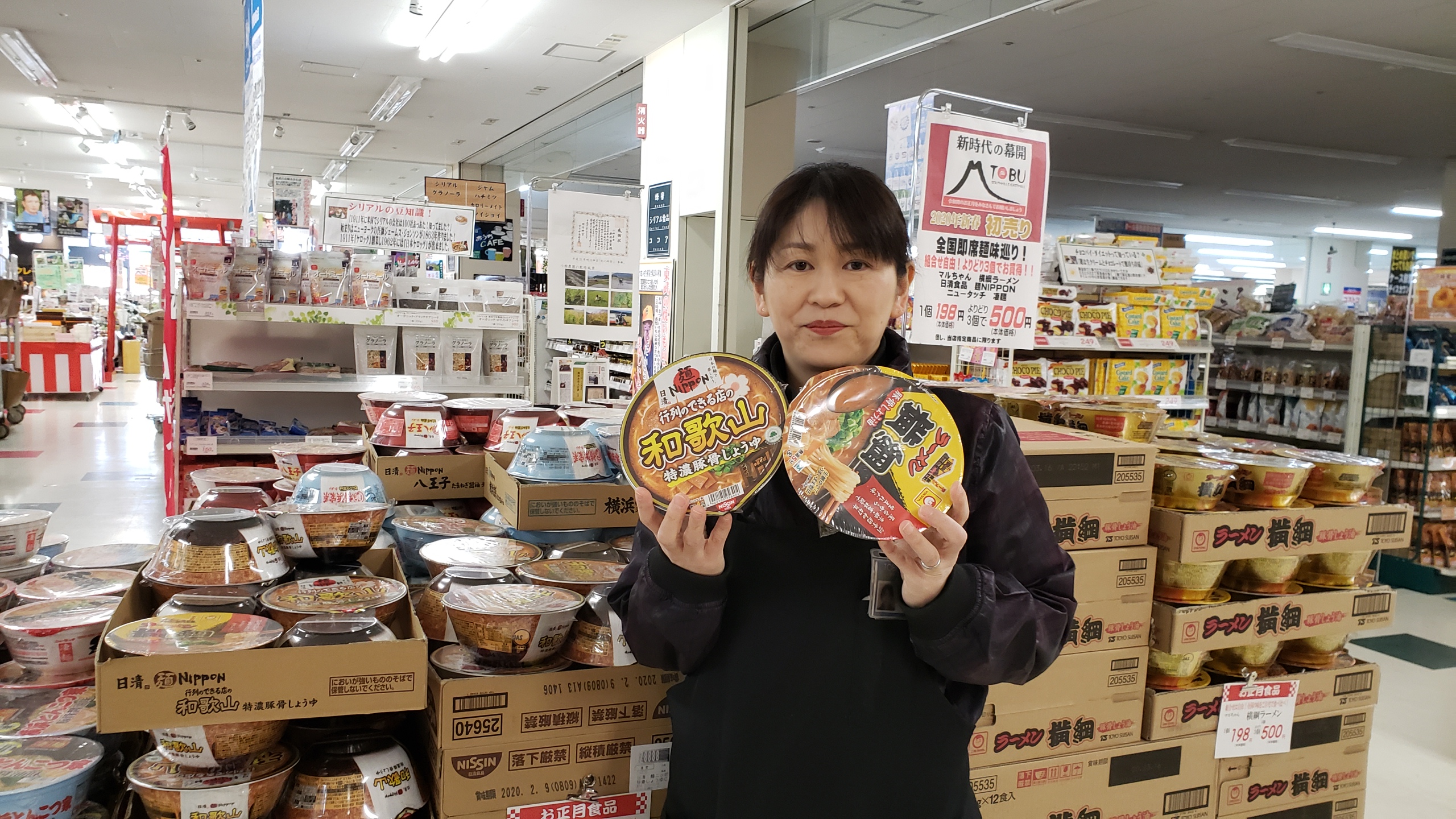食品コーナーからは!全国の味を!カップラーメンで!ニュータッチ 凄麺シリーズ各種!青森!新潟!函館!札幌!名古屋!横浜!京都!和歌山!奈良!瀬戸内!埼玉!などのご当地ラーメンが食べれます!価格は1コ198円よりどり3コで500円です。是非お買い求めくださいませ。