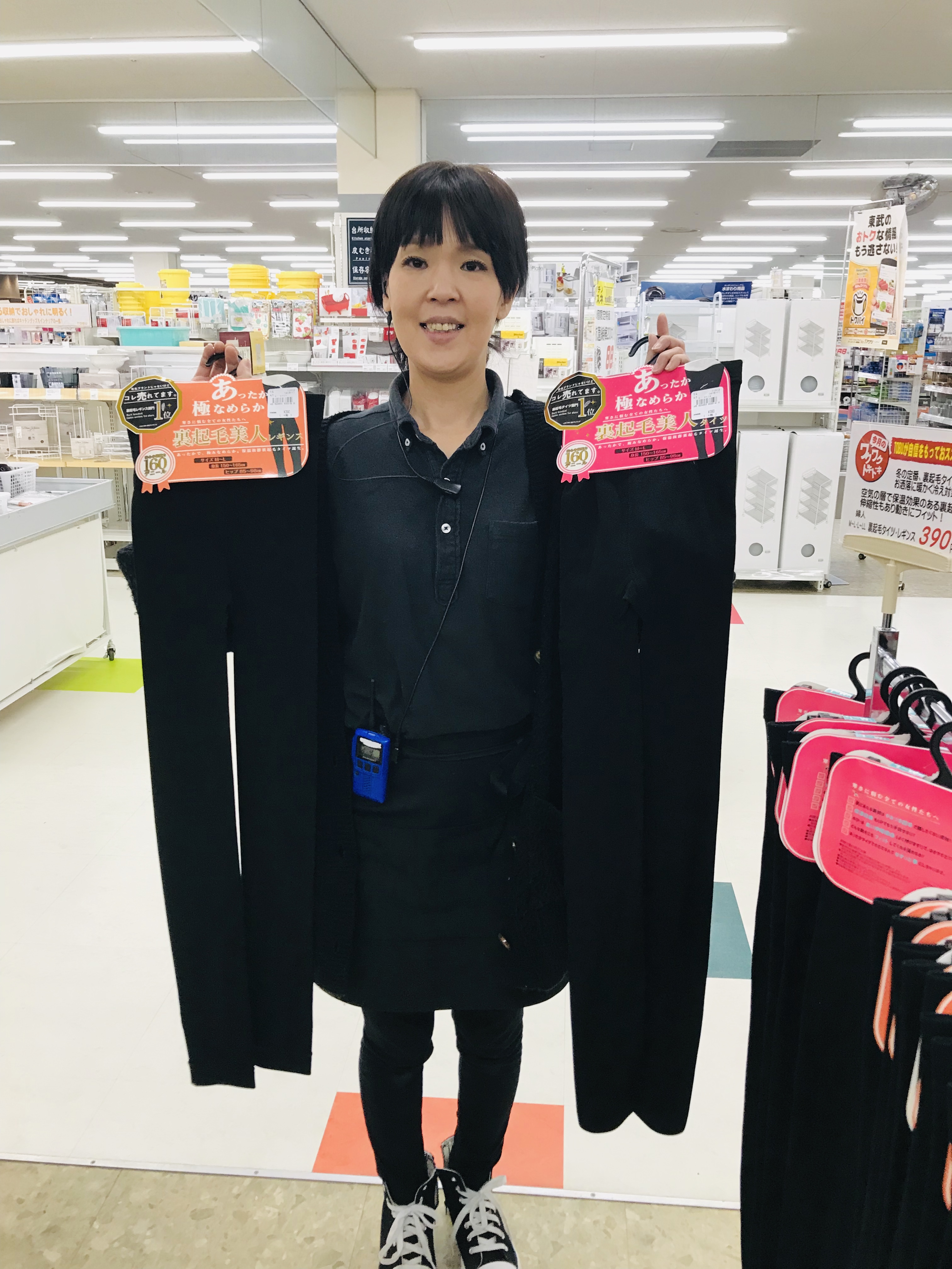 おはようございます。衣料品コーナーよりオススメ商品のご案内です。あったか極みなめらかな寒さに悩む全ての女性の方へ裏起毛レギンス・タイツのご紹介です。保温に優れたタイツです。お値段も手頃な¥390とお買い得。触り心地もなめらかで履きやすさ抜群です。ぜひ衣料品コーナーまでお立ち寄り下さい。
