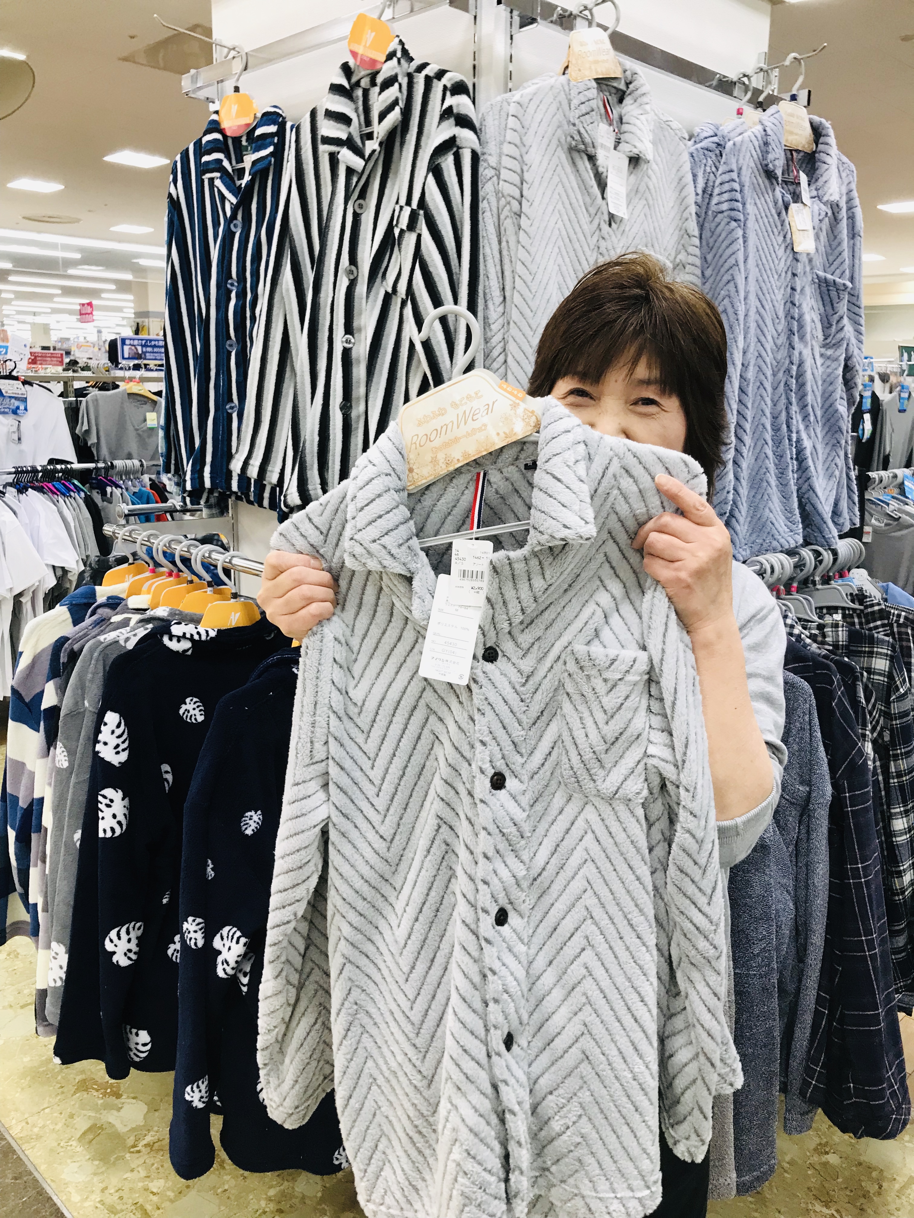 おはようございます。衣料品コーナーよりオススメ商品のご案内です。今日は紳士のフワフワモコモコあったかルームウェアです。柄も豊富で¥2900今ならセールの半額です。男の人も 寒さには応えますよね(>人<;)肌触りがいいので頑張った1日の終わりに男の人もフワモコで癒されて下さい。