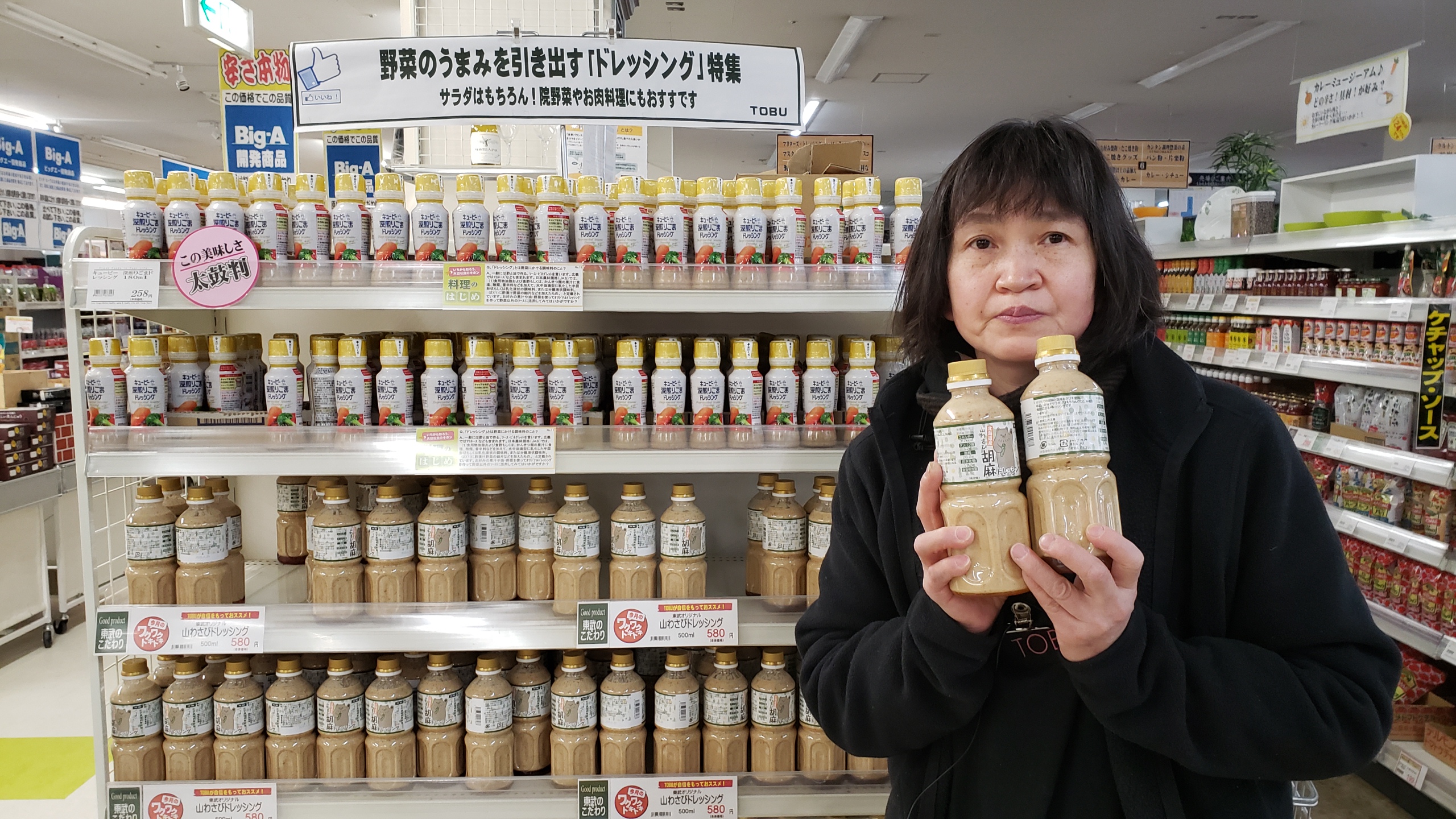 食品コーナーからは!売れてます。東武オリジナル山わさび胡麻ドレッシング!すりたての胡麻と国産わさびを使用した程よい辛みでサラダにはもちろんのこと料理の幅が広がるドレッシングです!価格は500ml入りで580円です。是非お買い求めくださいませ。