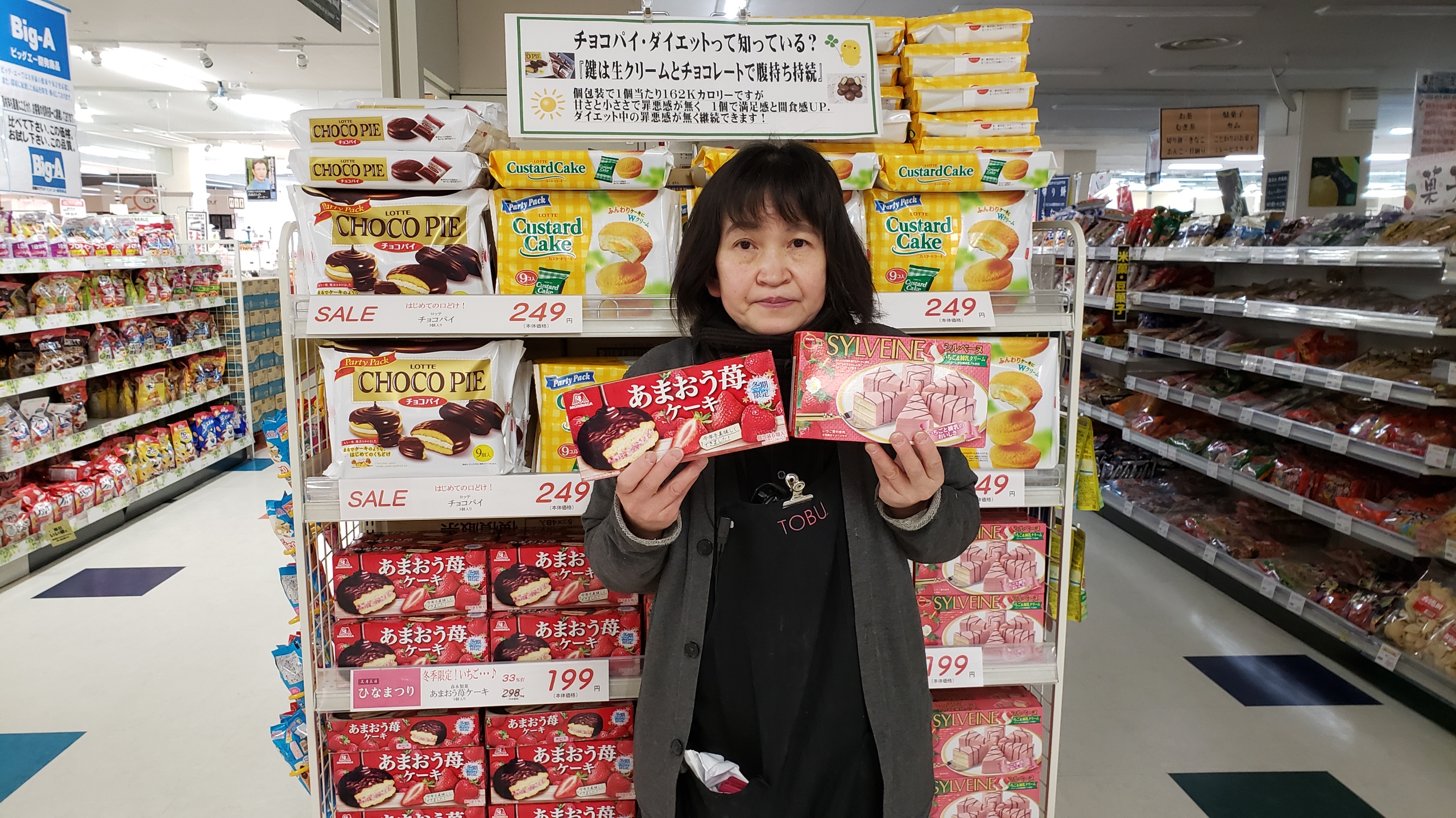食品コーナーからは!冬季限定!森永 あまおう苺ケーキ 福岡が誇るあまおう苺をチョコレートケーキに仕上げました!6コ入りで199円ブルボン シルベーヌ いちご&練乳クリームです。ふんわりと焼き上げたケーキに練乳クリームをサンドし、いちごのチョコレートで贅沢にコーティングしました。6コ入りで199円です。是非お買い求めくださいませ。
