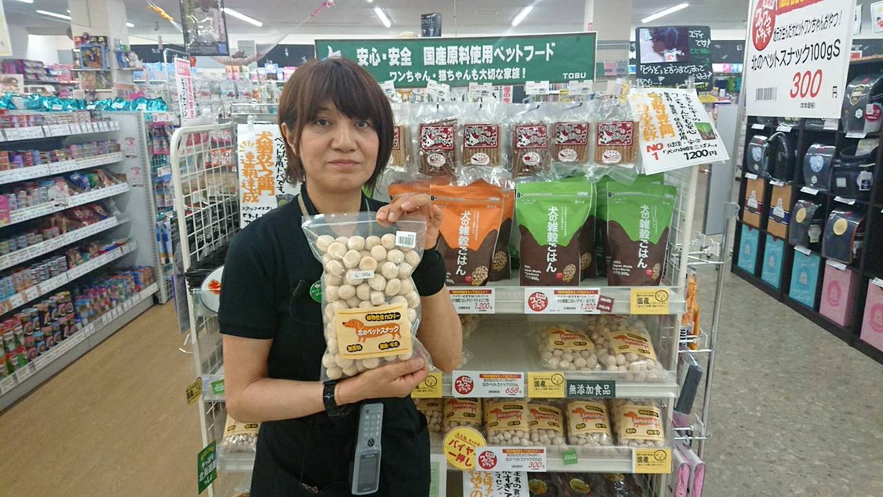 柳原です。 ペットコーナーで一番人気の商品はこちら!留辺蘂のパン製造会社が開発した北のペットフードです。お客様リピート率No.1で大変ご好評致しております!サクサク感が自慢のこちらの商品は製造数が限られており品切れも多々発生します。見つけたらぜひ、ご利用下さいね!