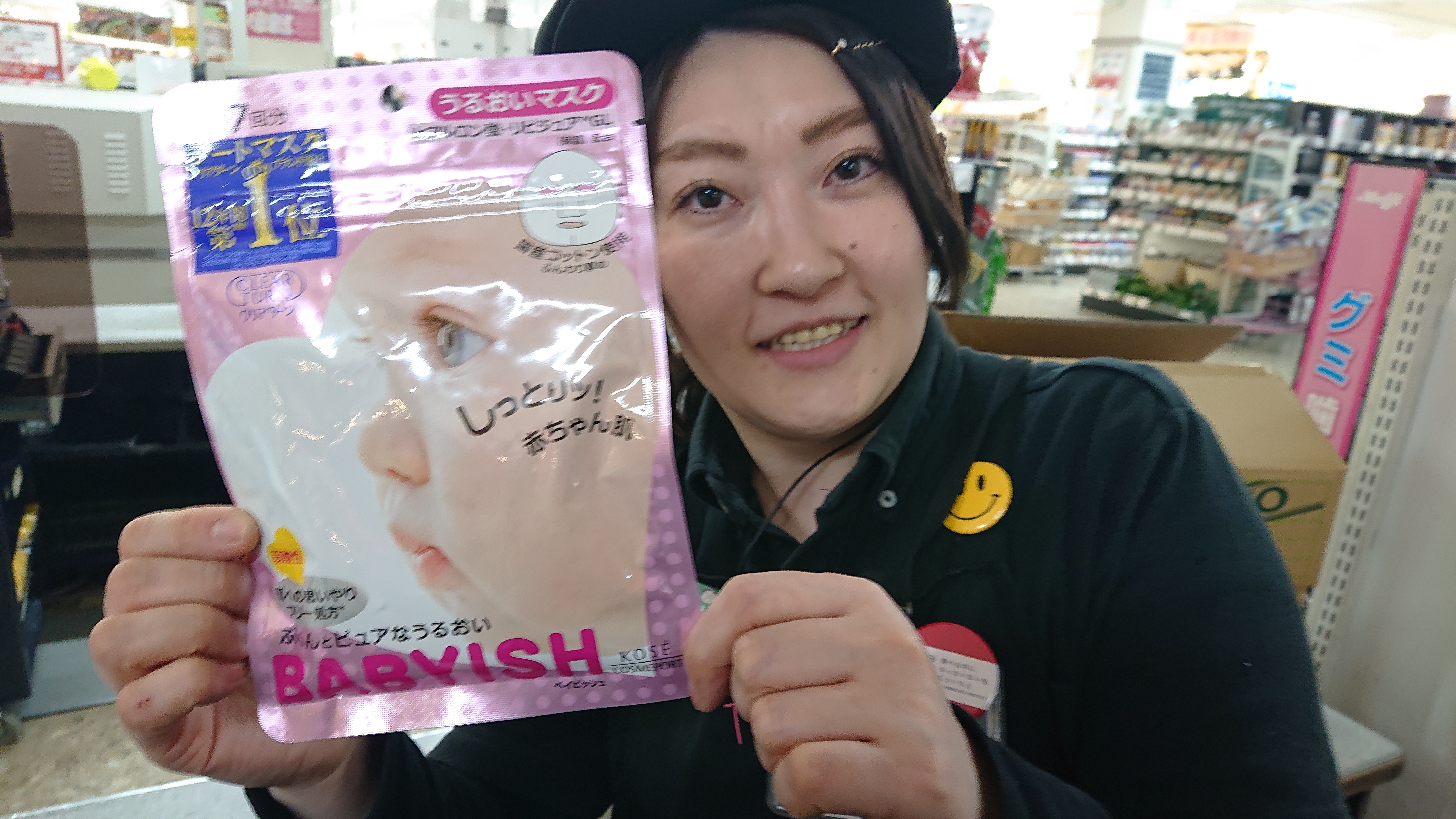 おはようございます。家庭消耗品担当小西です。本日のおすすめ商品は、うるおいフェイスマスクです。赤ちゃん肌のようなぷるぷる肌になります。