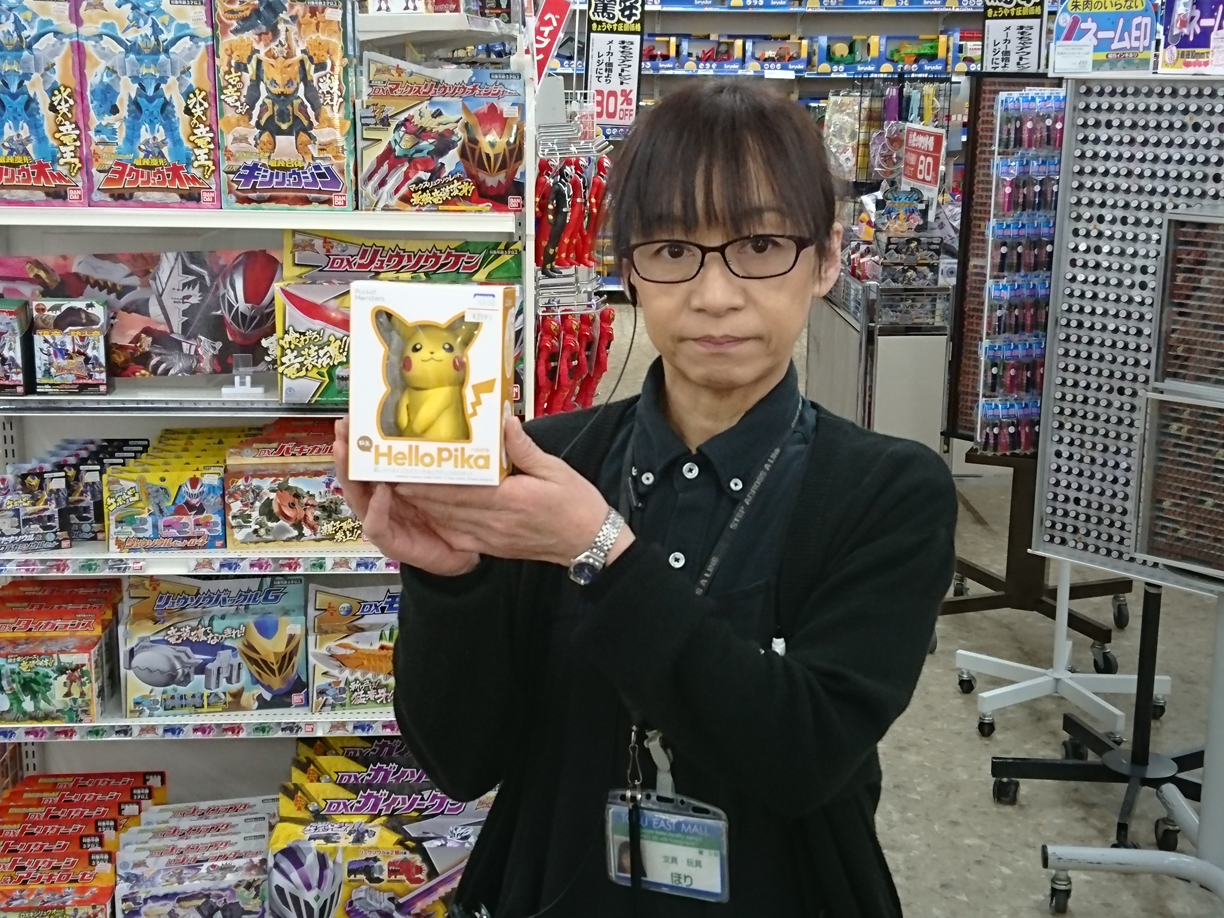 玩具担当和田です。話しかけると振り向いたりおしゃべりしたり、ポケモンで人気のピカチュウといつでも一緒。オススメのコミュニケーショントイ【ねえハロピカ】玩具コーナーにて販売中です!