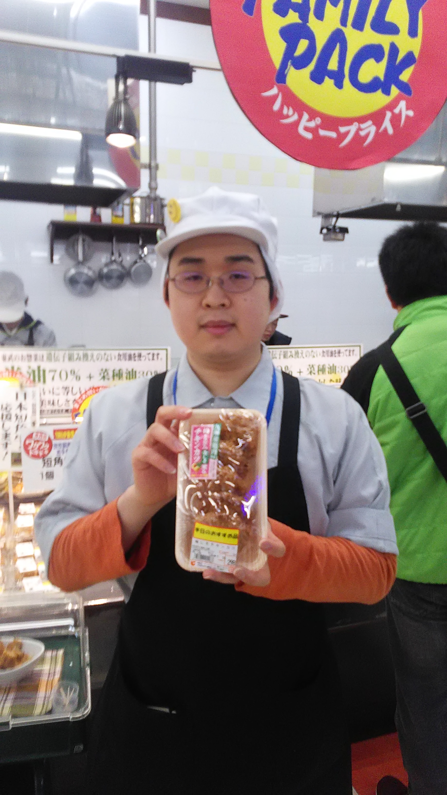 おはようございます。惣菜担当小川です。九州産鶏肉を使用し、梅ときざみ青しそを薫ります。鶏肉を加工成型しております。