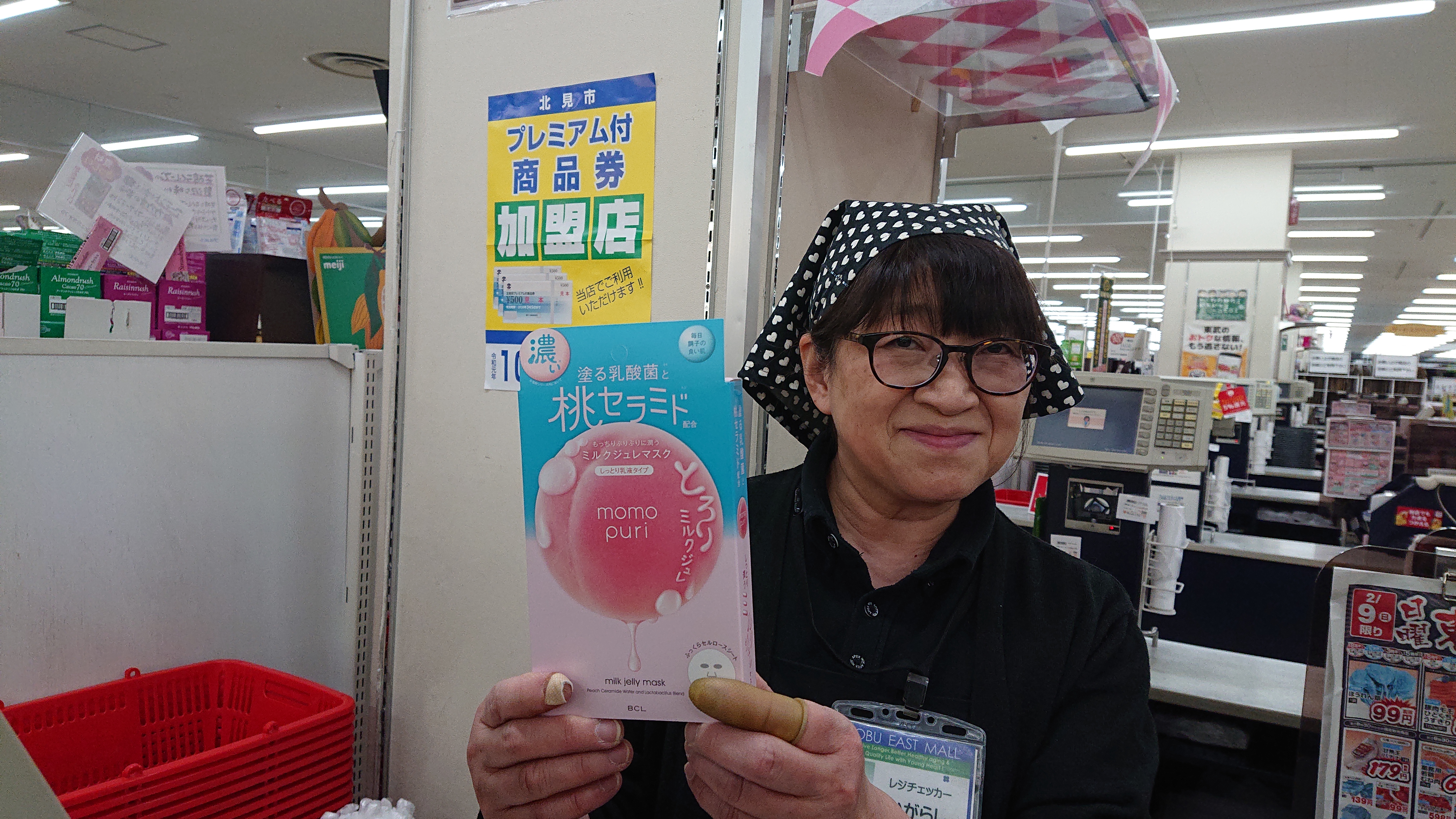 おはようございます。家庭消耗品担当小西です。本日のおすすめ商品は、濃密ジュレマスクです。桃の良い香りでお肌ももっちりです。