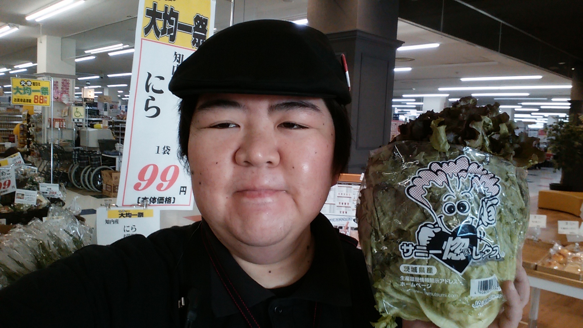 おはようございます。青果担当奥瀬です。本日、茨城よりサニーレタスが入荷致しました。サンドイッチに、サラダに、お弁当に大活躍のサニーレタス。1玉88円です。是非ご利用ください。