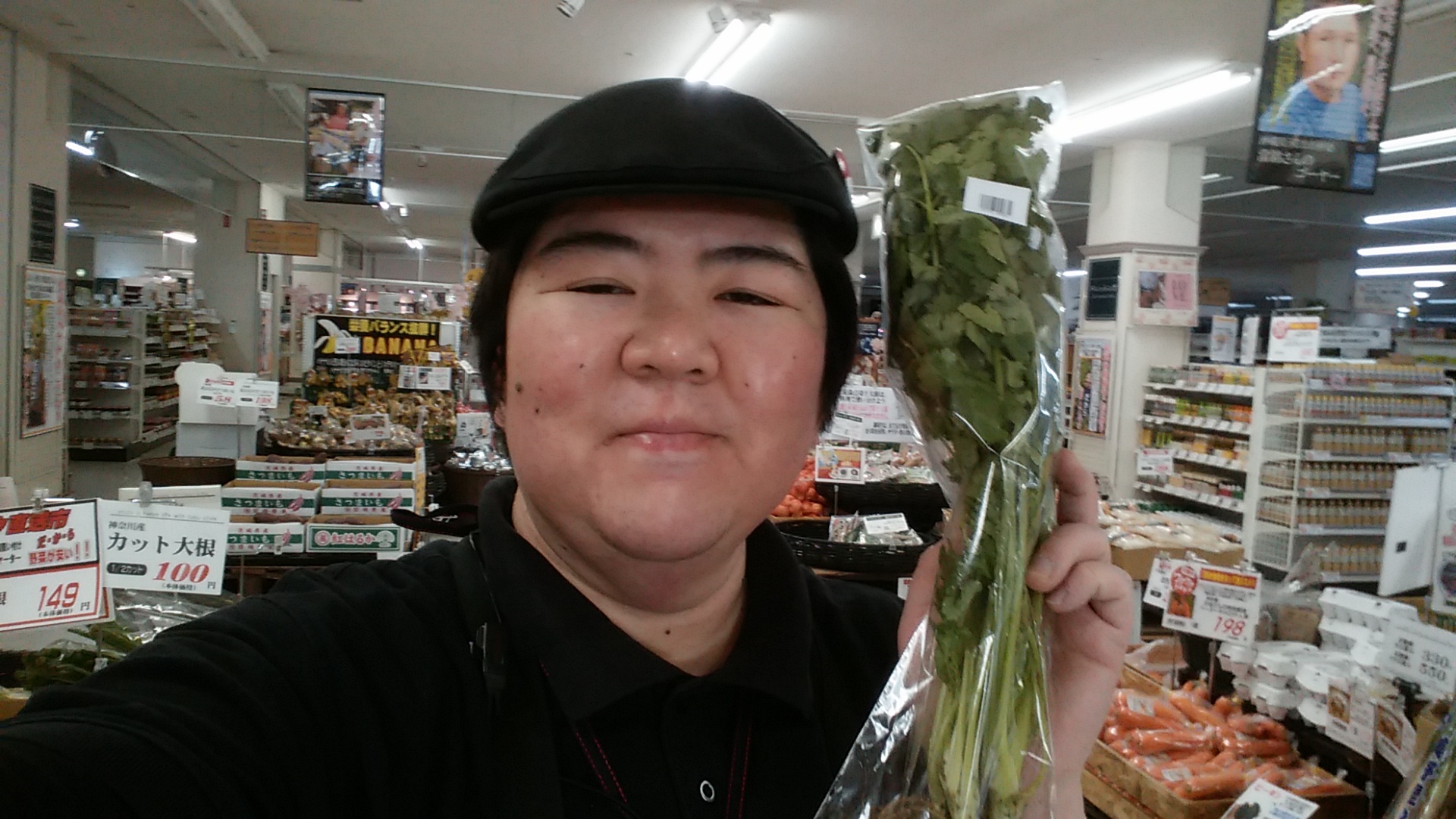 おはようございます。青果担当奥瀬です。本日は、夢想農園のパクチーのご紹介です。十勝は士幌の夢想農園で作られたパクチー。精油成分が複数含まれていて、胃腸の働きを助けるとされています。香りも味も独特ですが、パクチー好きにはたまらない商品です。1袋約100グラム入りで298円です。是非ご利用下さい。皆様のご来店をお待ちしております。
