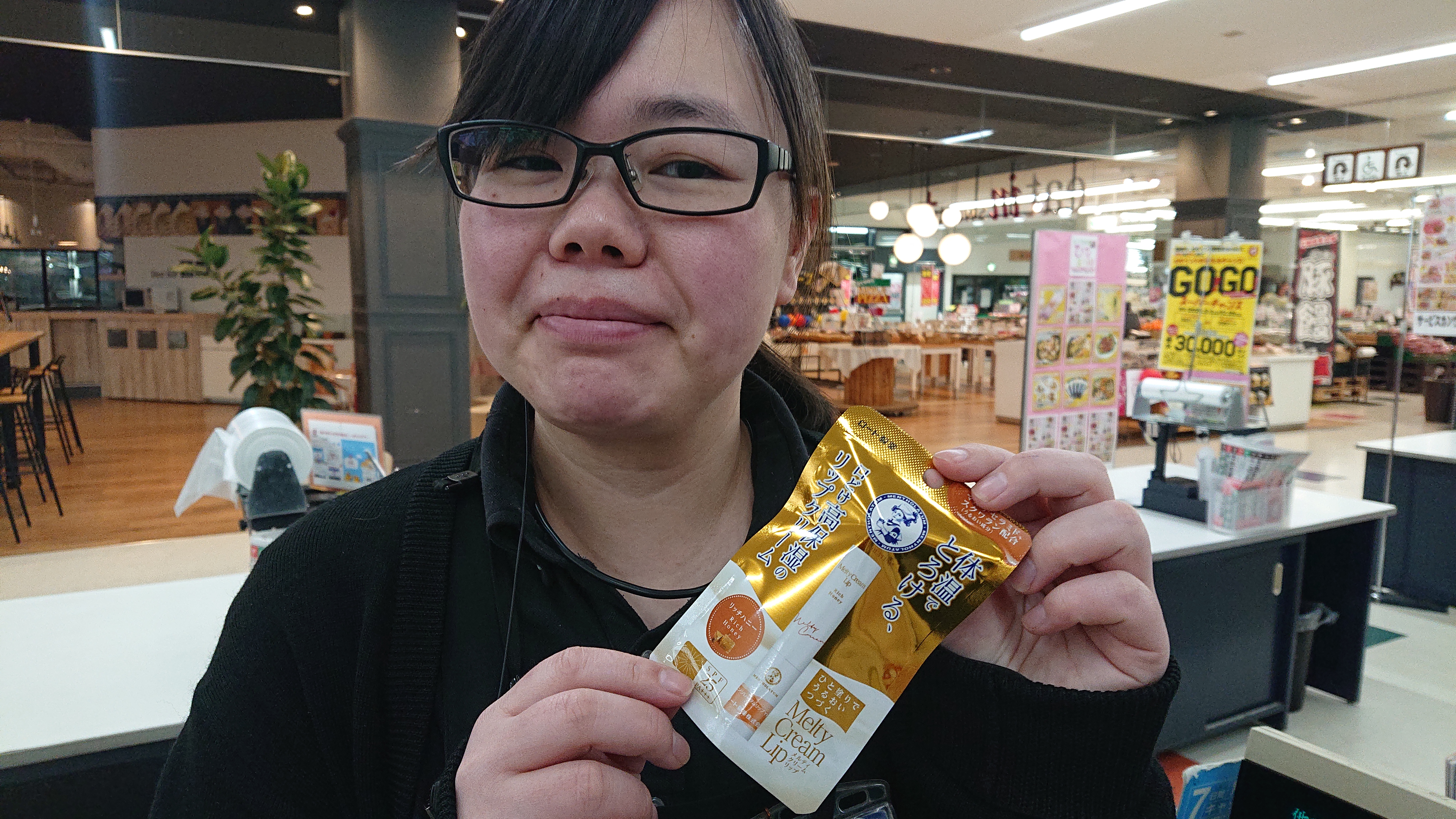 おはようございます。家庭消耗品担当小西です。本日のおすすめ商品は、メルティクリームリップです。体温でとろけるリップで唇にしっかりつきます。