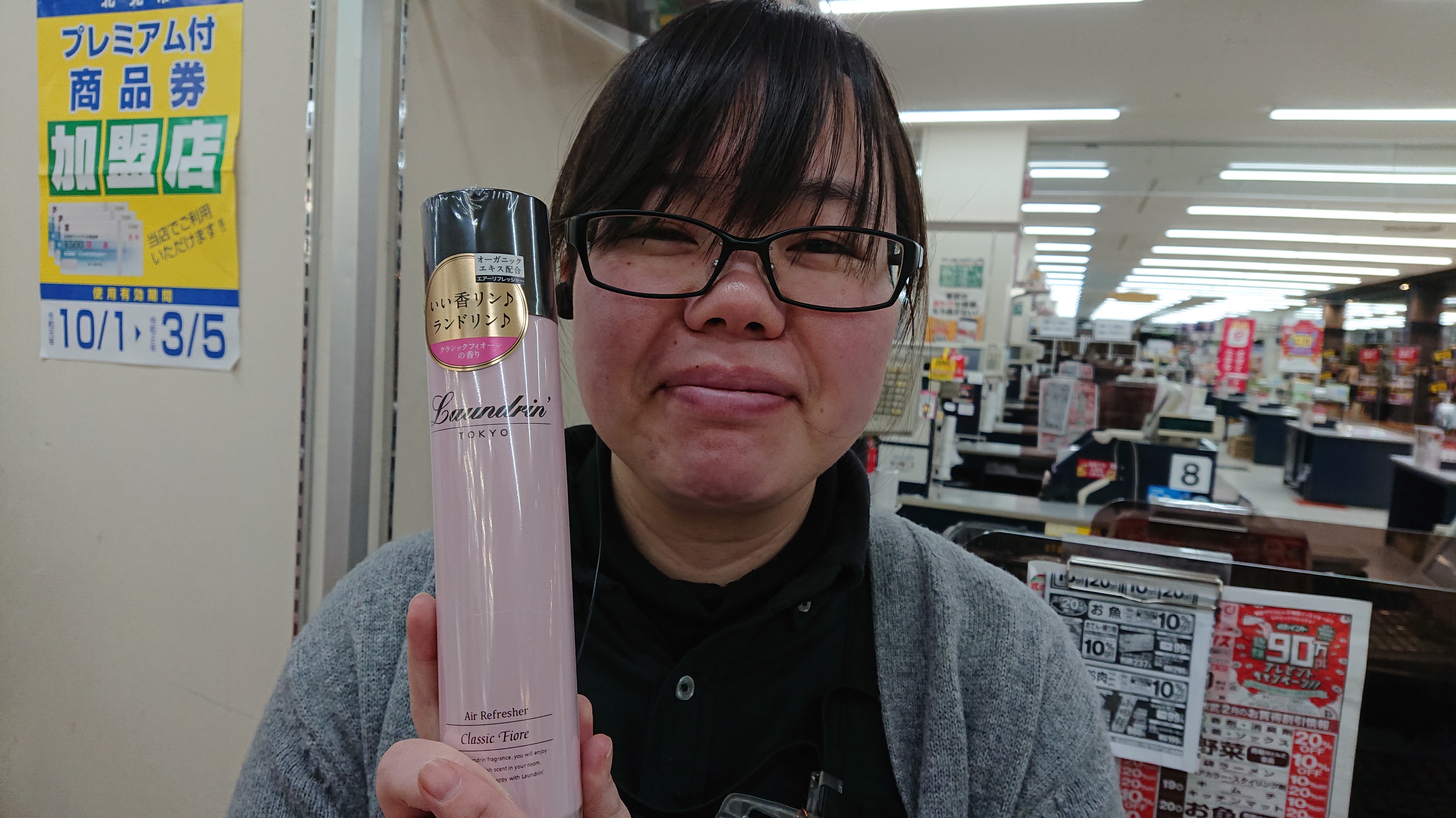 おはようございます。家庭消耗品担当小西です。本日のおすすめ商品は、ラボンフレグランススプレーです。お部屋に良い香りが漂います。