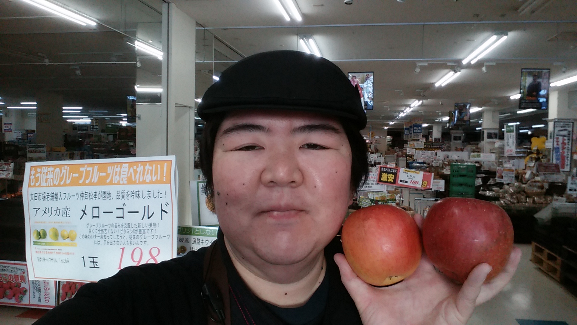 おはようございます。青果担当奥瀬です。本日は青森産のサン富士りんごごお買い得です。糖度の高いサン富士りんごを1玉99円にて販売いたします。パリッとした食感が美味しい富士りんご、是非ご利用ください。皆様のご来店をお待ちしております!