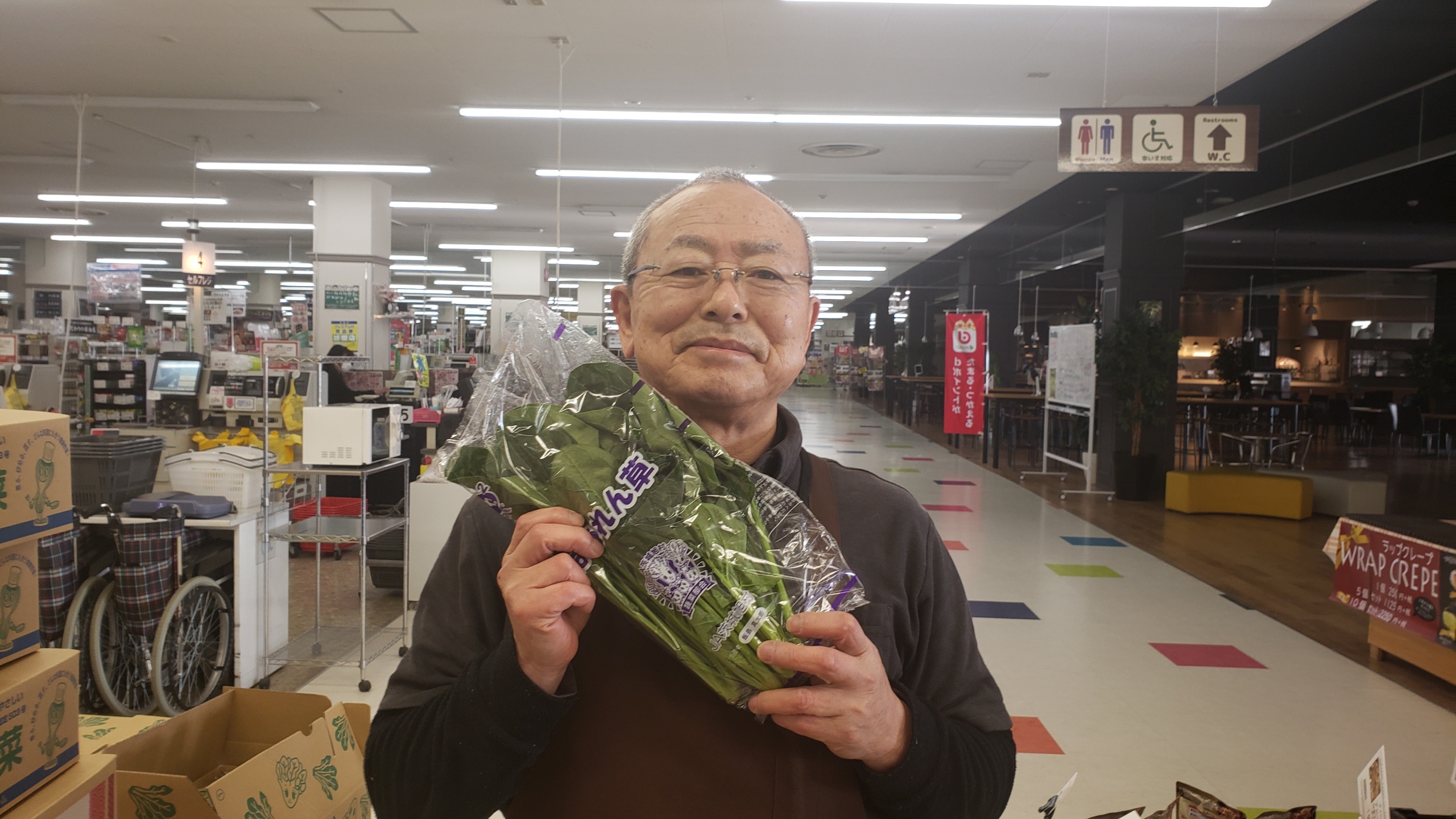青果コーナーのオススメ!茨城産ホクレン草がお買得です。1袋129円。冬の、ほうれん草は甘味もあり、栄養価も高いです