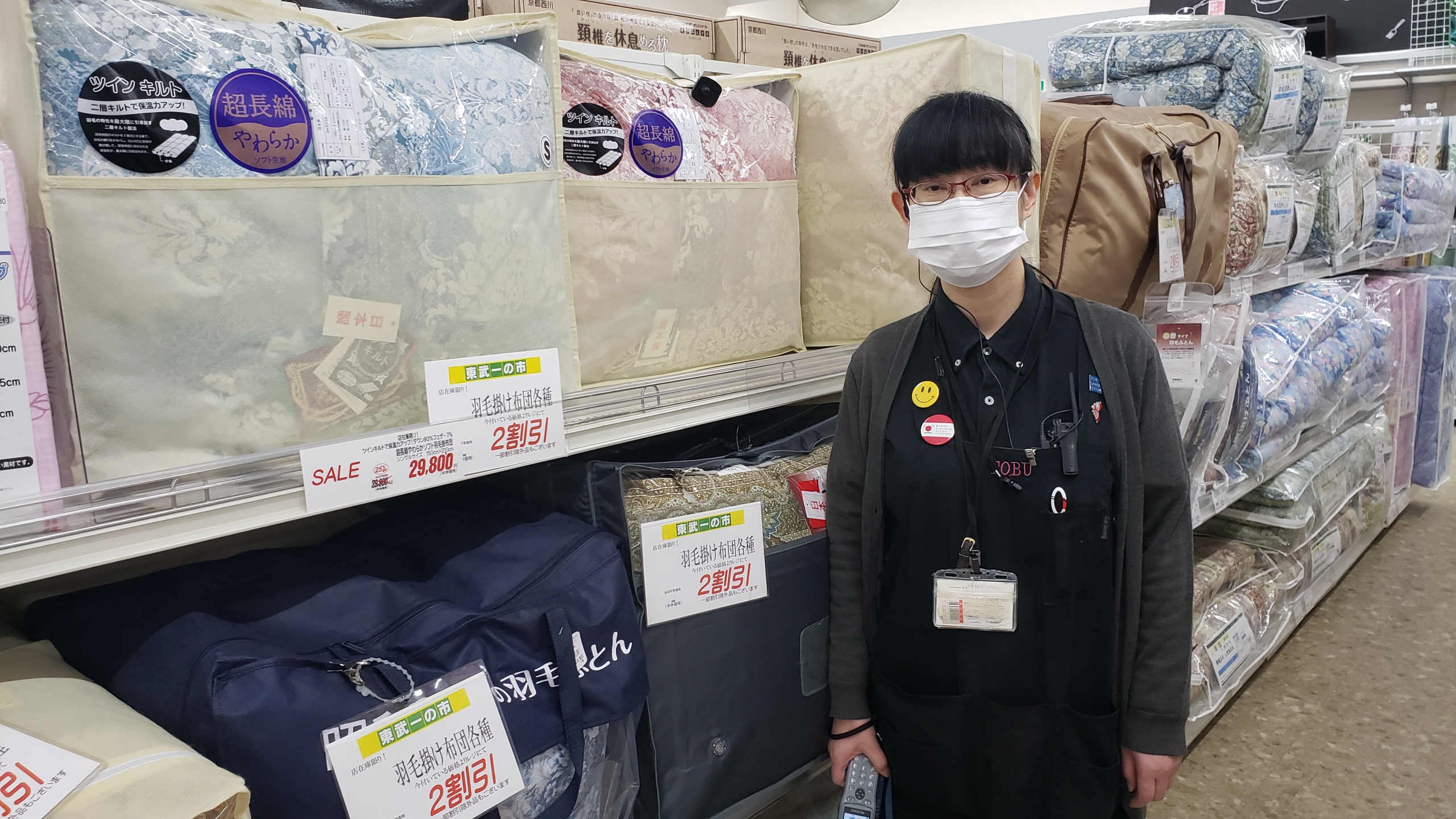 インテリアコーナーからは!羽毛布団各種いまだに付いている価格からレジにて2割引です。是非お買い求めくださいませ。