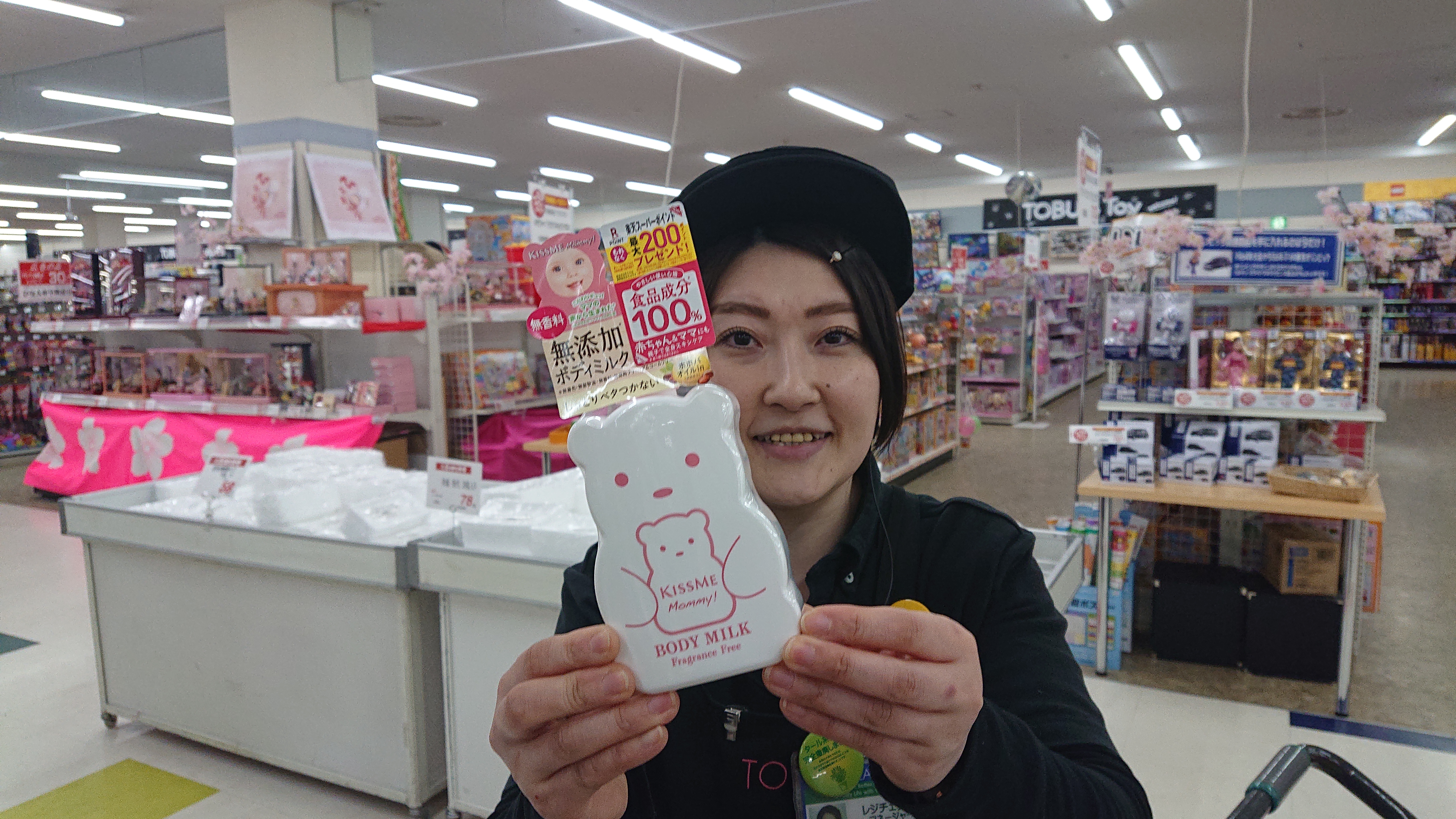 おはようございます。家庭消耗品担当小西です。本日のおすすめ商品は、無添加ボディミルクです。赤ちゃんにも安心です。