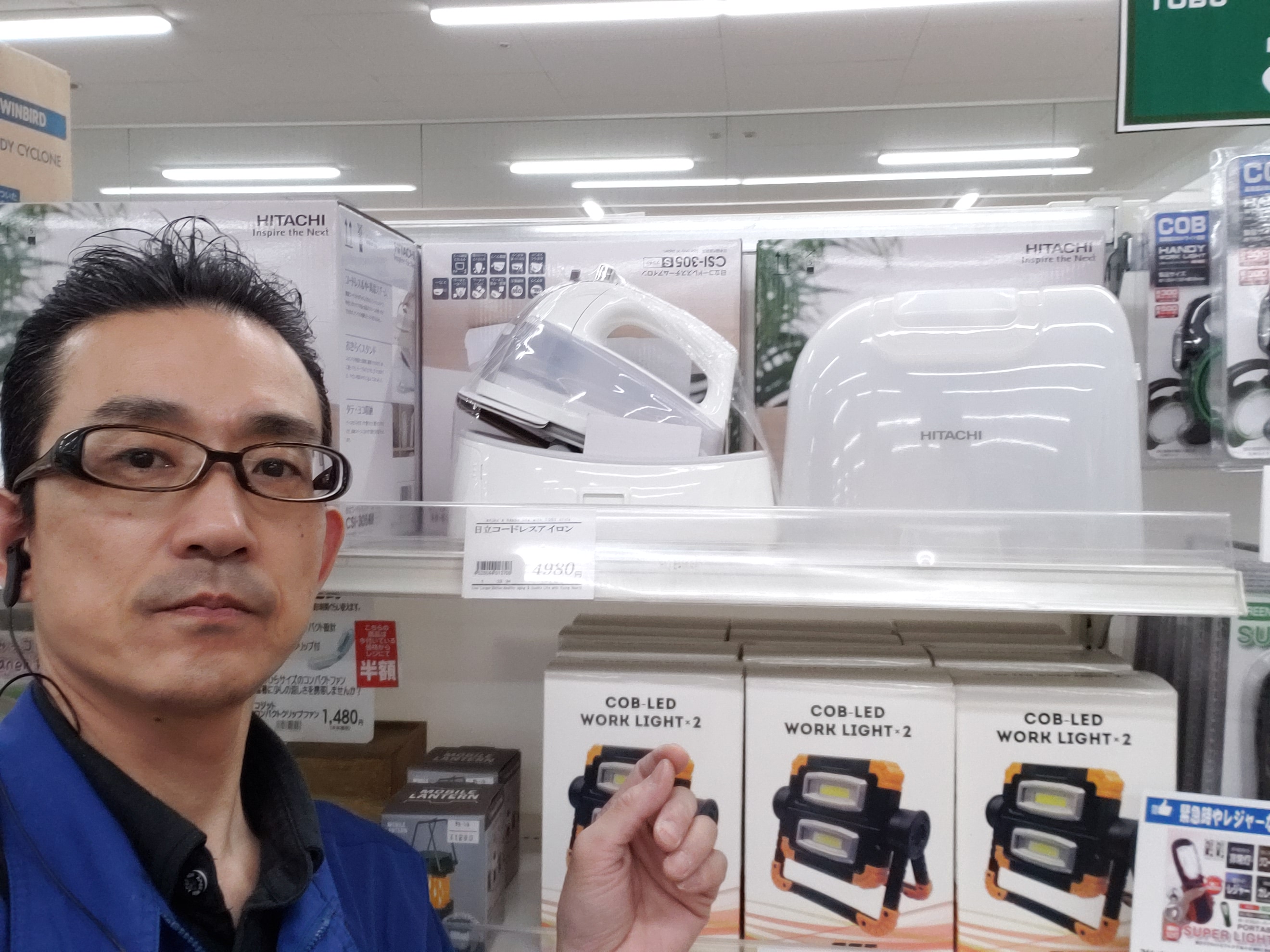 家電コーナーからは!おすすめです!日立 コードレススチームアイロン ケース付き 価格は4980円です。是非お買い求めくださいませ。