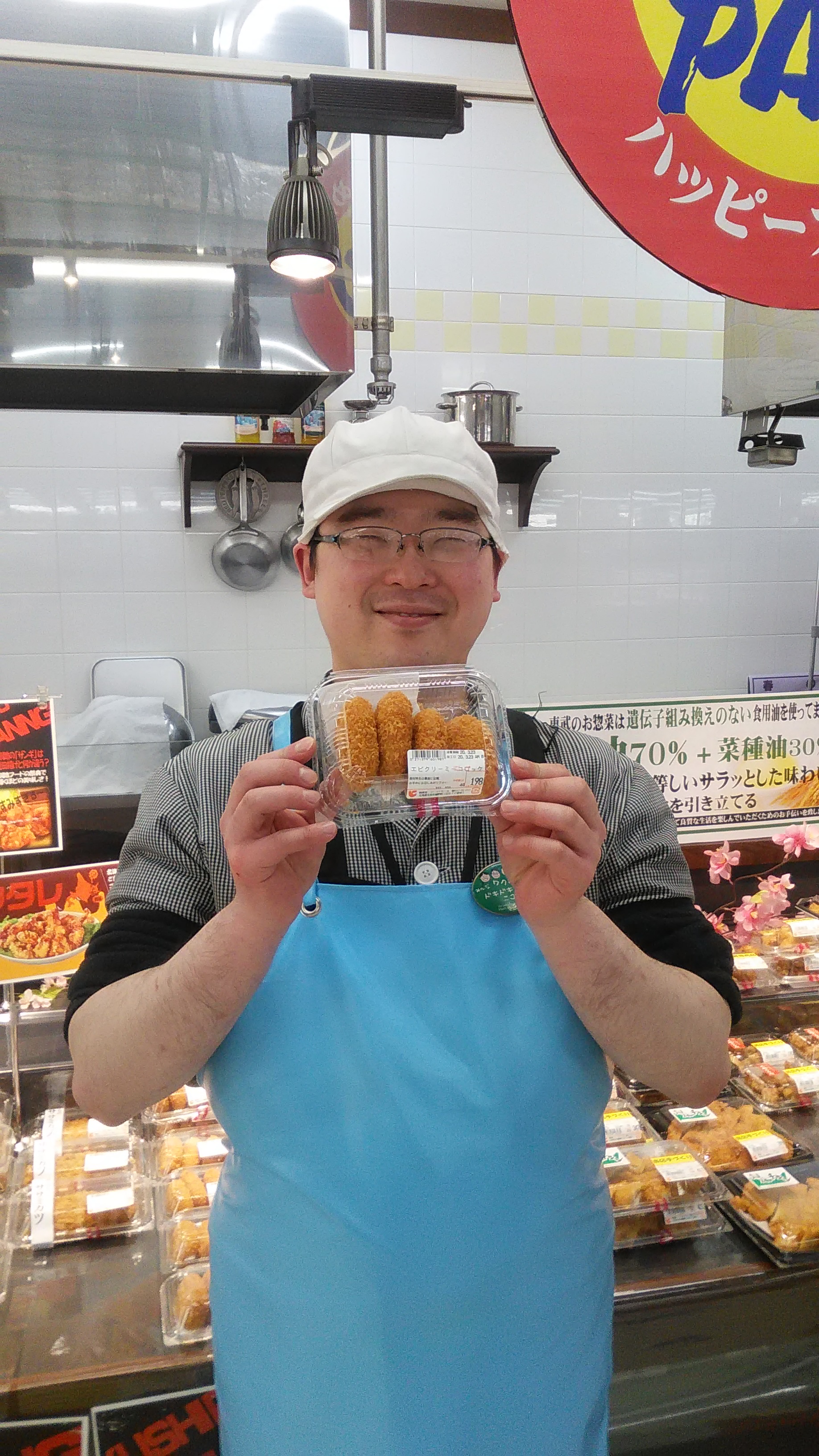 おはようございます。惣菜担当堀口です 。駿河湾産の桜海老を使用した、クリームタイプのコロッケです。なめらかなベシャメルソースと桜海老の風味が香り高い味わいを生み出します。