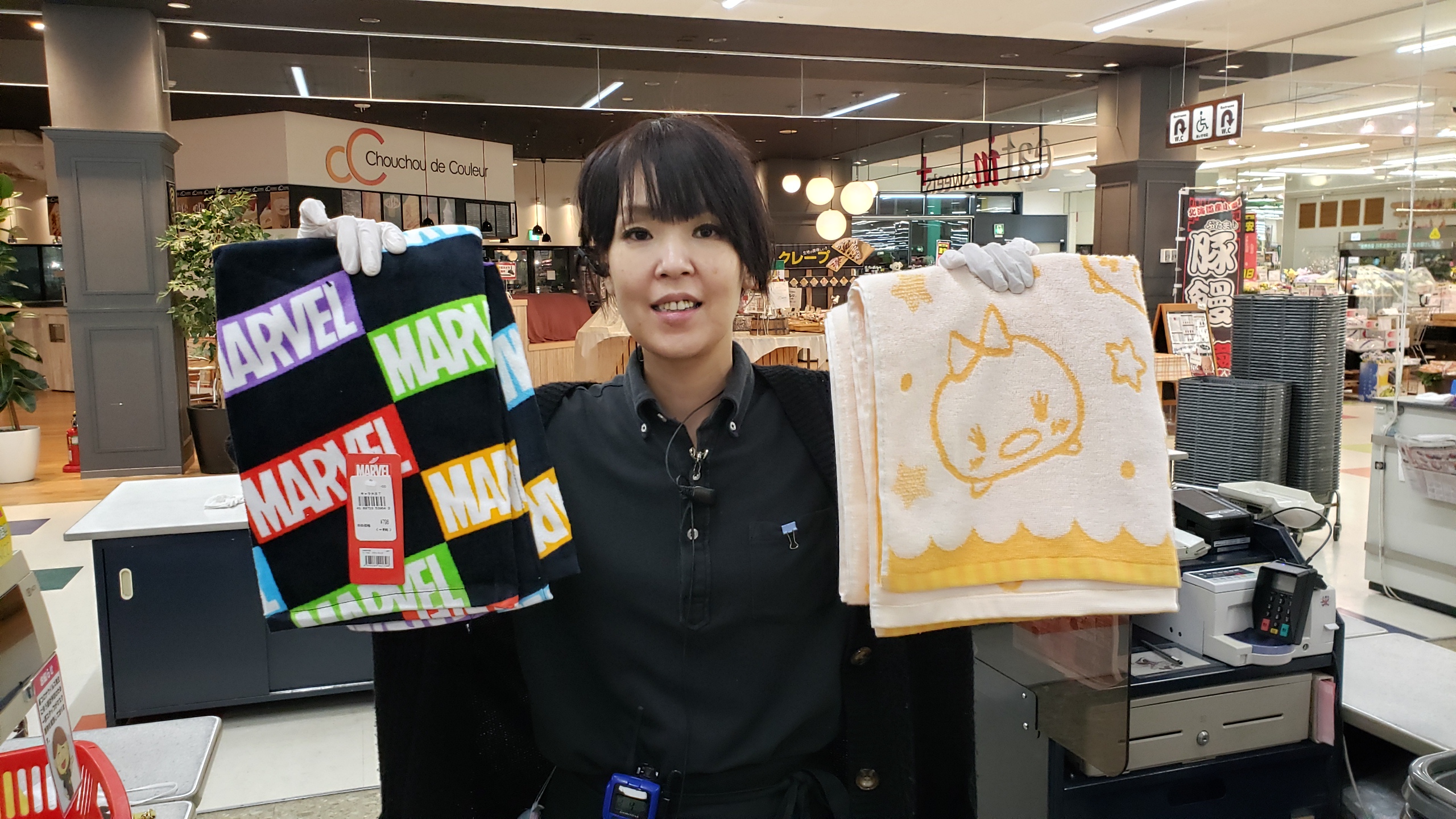 インテリアコーナーからは!お買得です!キャラクター バスタオル サイズは約70cm×140cmです。価格は577円です。是非お買い求めくださいませ。