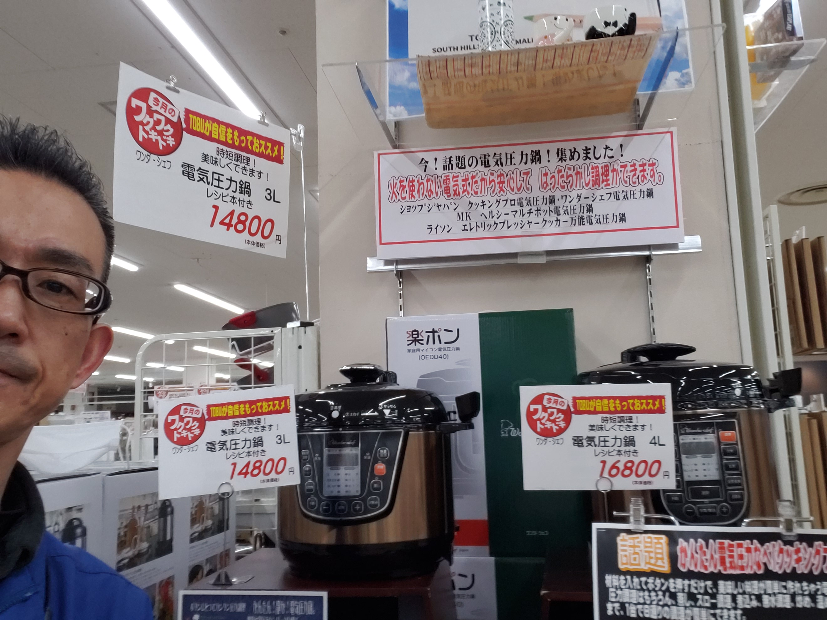 家電コーナーからは!時短調理におすすめです!ワンダーシェフ 電気圧力鍋! 具材、調味料を入れてボタンを押すだけ!簡単調理! 3Lサイズ価格は14800円 4Lサイズ価格は16800円 です。是非お買い求めくださいませ。