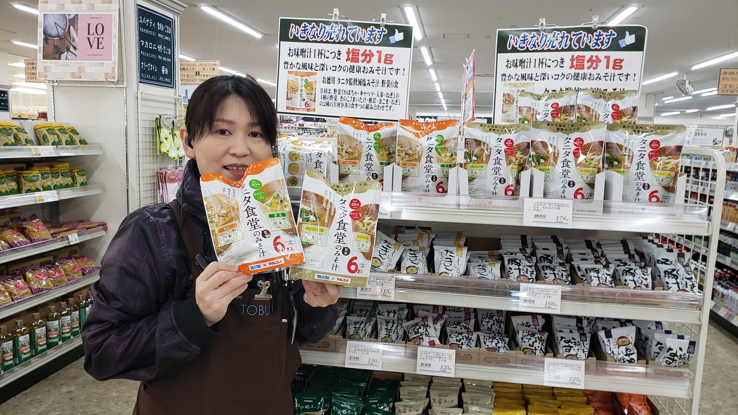 食品コーナーからは!からだの健康に!マルコメ タニタ食堂監修のみそ汁です。豊かな風味と深いコクの健康お味噌汁です。お味噌汁一杯につき塩分を1gに抑えることに成功しました!価格は6食入りで178円です。是非お買い求めくださいませ。