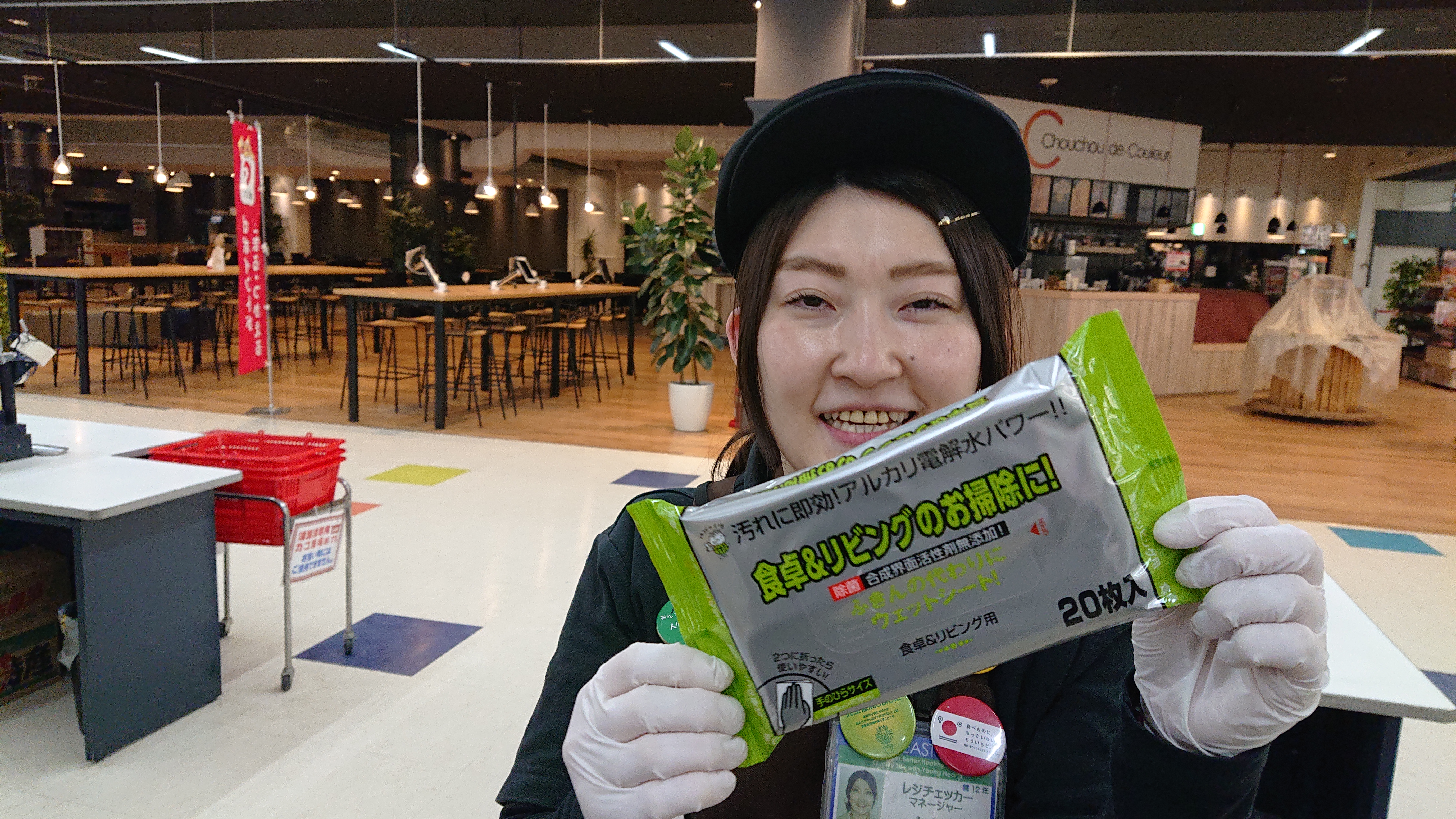 おはようございます。家庭消耗品担当小西です。本日のおすすめ商品は、食卓&リビングお掃除シートです。アルカリ電解水でおすすめです。