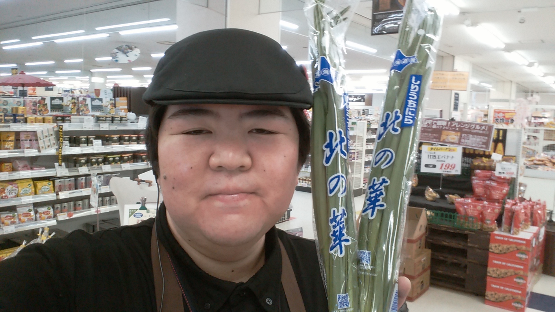おはようございます。本日青果コーナーではにらがお買い得です。知内産にら、1袋99円です。是非ご利用ください。