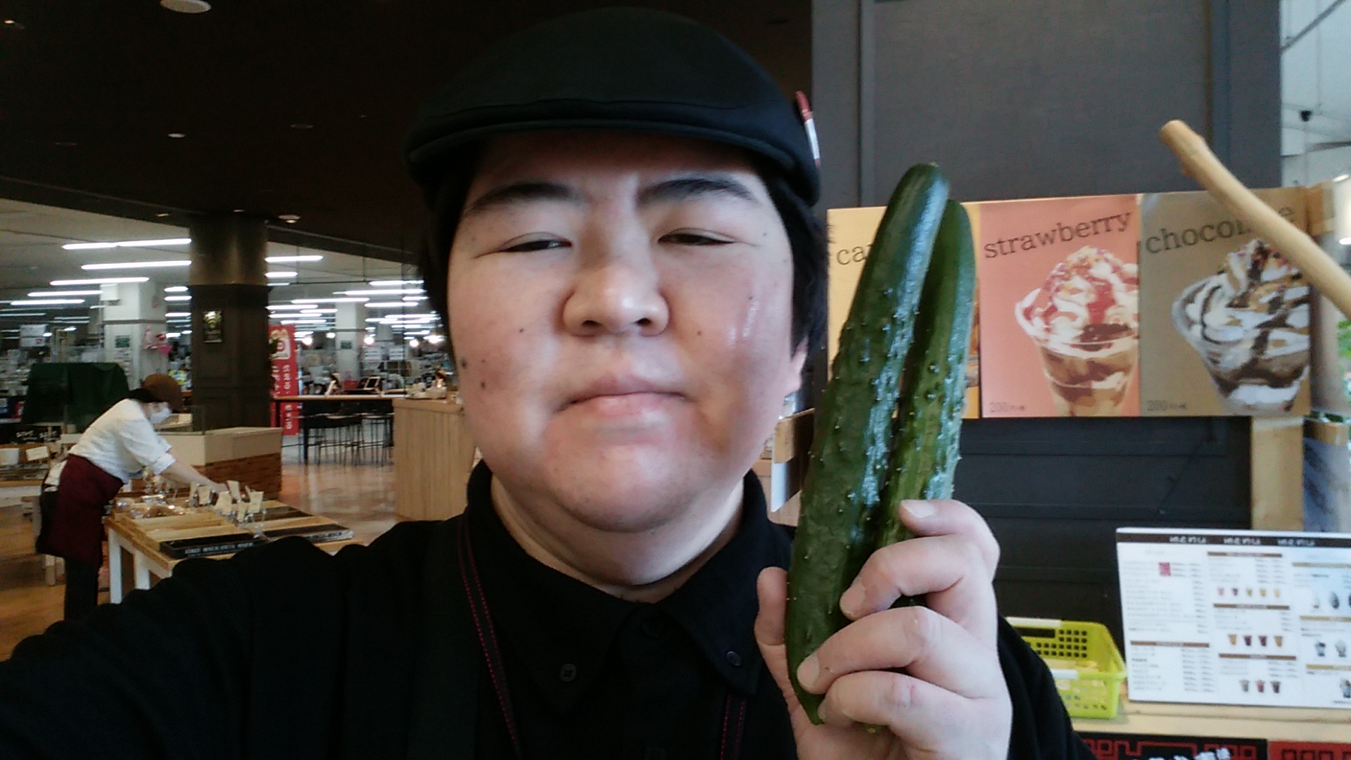 おはようございます。本日、青果コーナーではきゅうりがお買い得です。群馬、茨城産きゅうり 1本48円です。この他にもスーパー大均一祭として、様々なお買得品をご用意しております。是非ご利用ください。