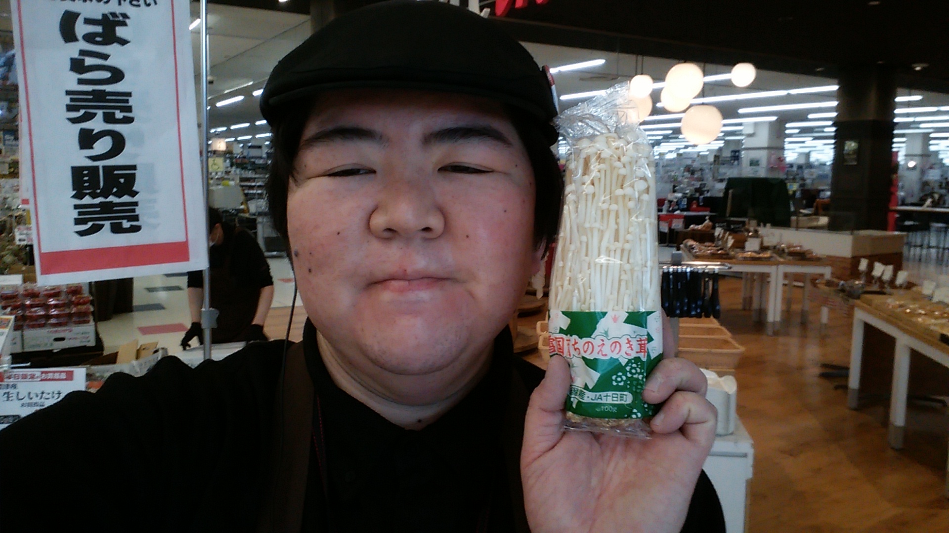 本日は青森、長野産えのきがお買い得です。100g入り1袋が55円です。どうぞご利用ください。