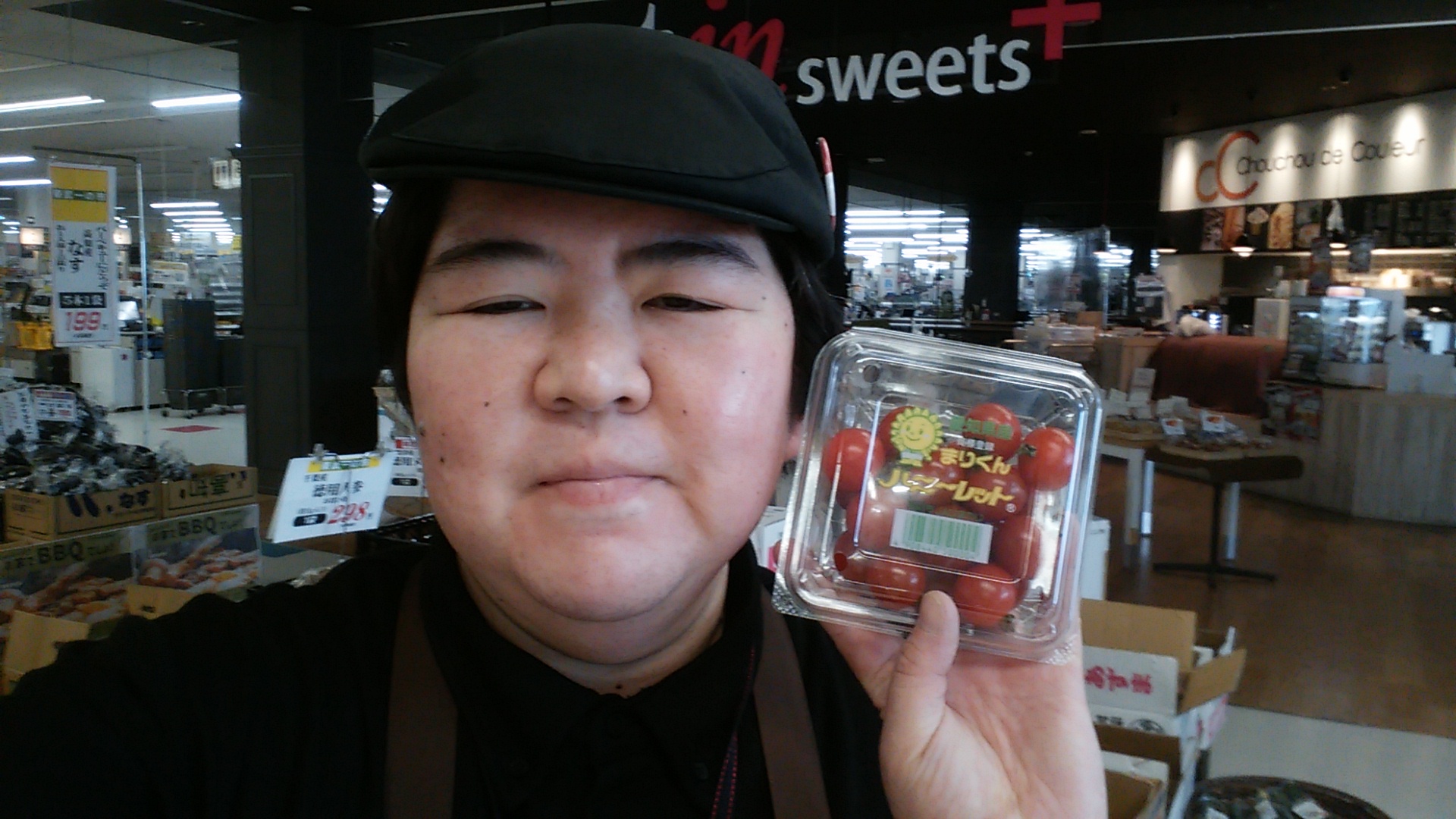 おはようございます。本日もミニトマトがお買い得です。愛知産、熊本産他ミニトマト、1パック199円です。是非ご利用ください。