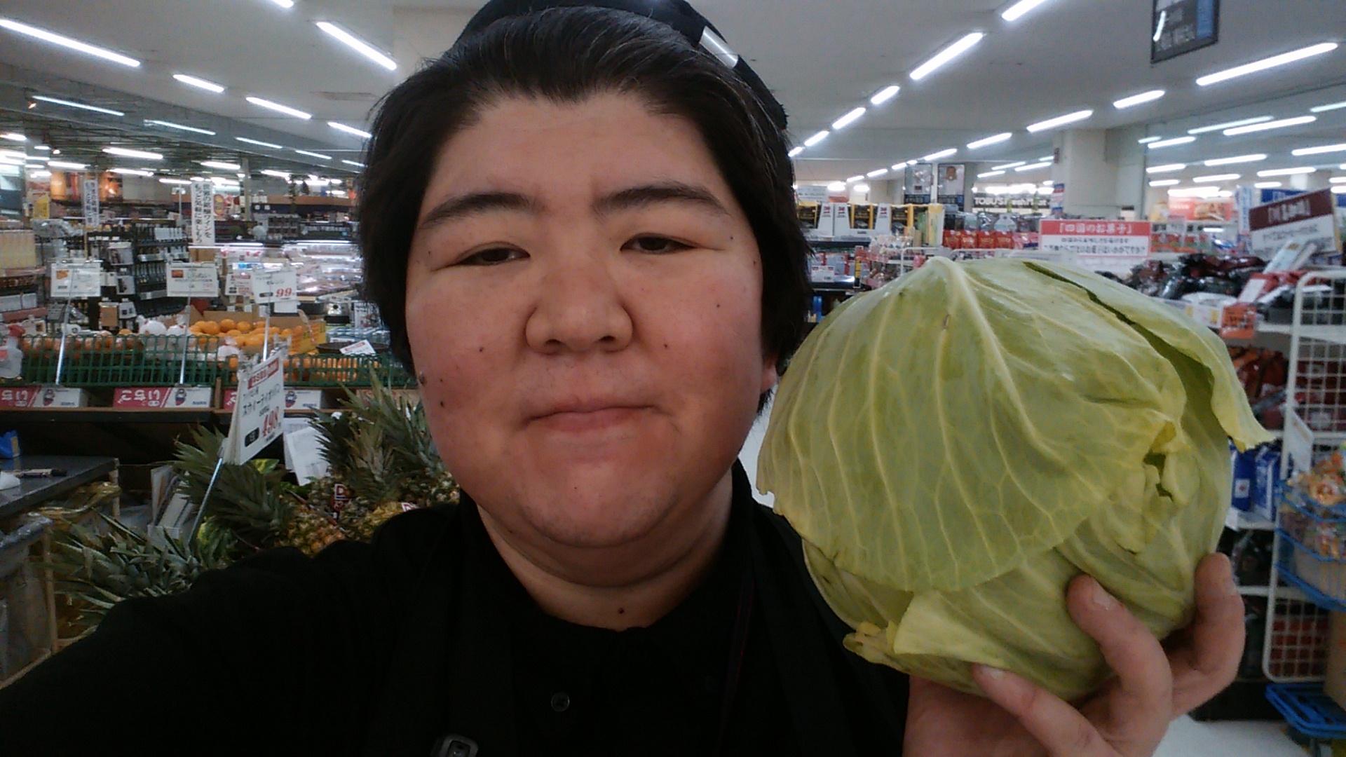 おはようございます。本日もキャベツがお買い得です。茨城産キャベツ 1玉 149円です。是非ご利用ください。