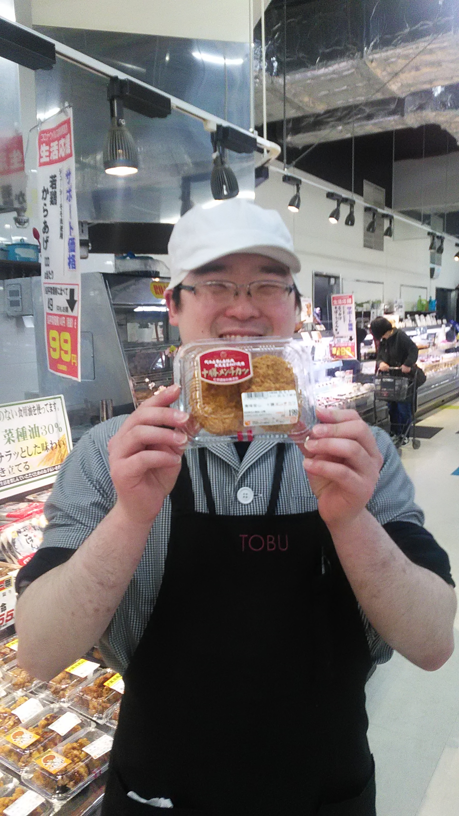 おはようございます。惣菜担当堀口です 。北海道帯広産・ 豚肉、北見産・玉ねぎを使用し化学調味料無添加商品です。