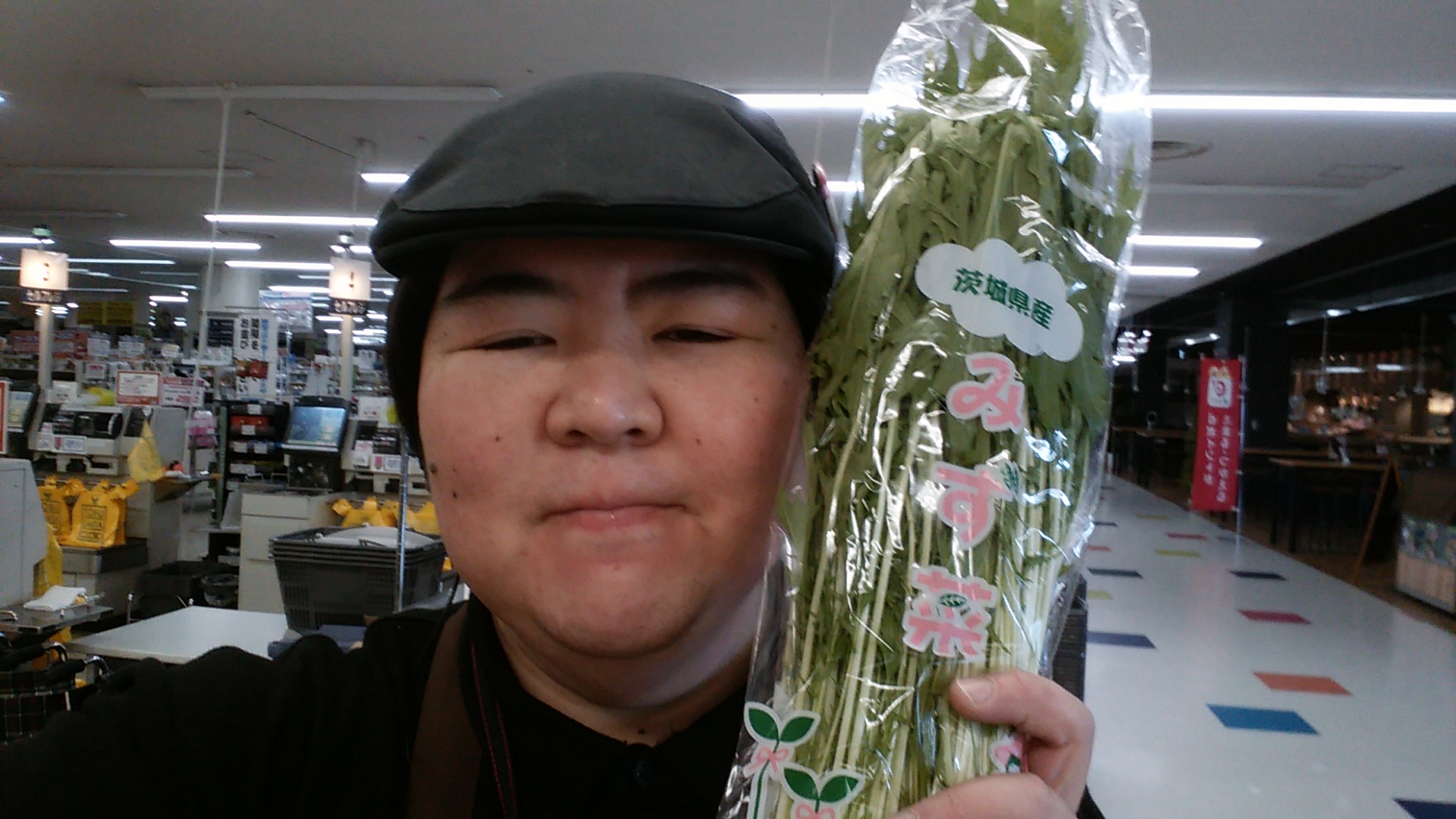 おはようございます。本日は茨城産水菜がお買い得です。1袋99円。是非ご利用ください。