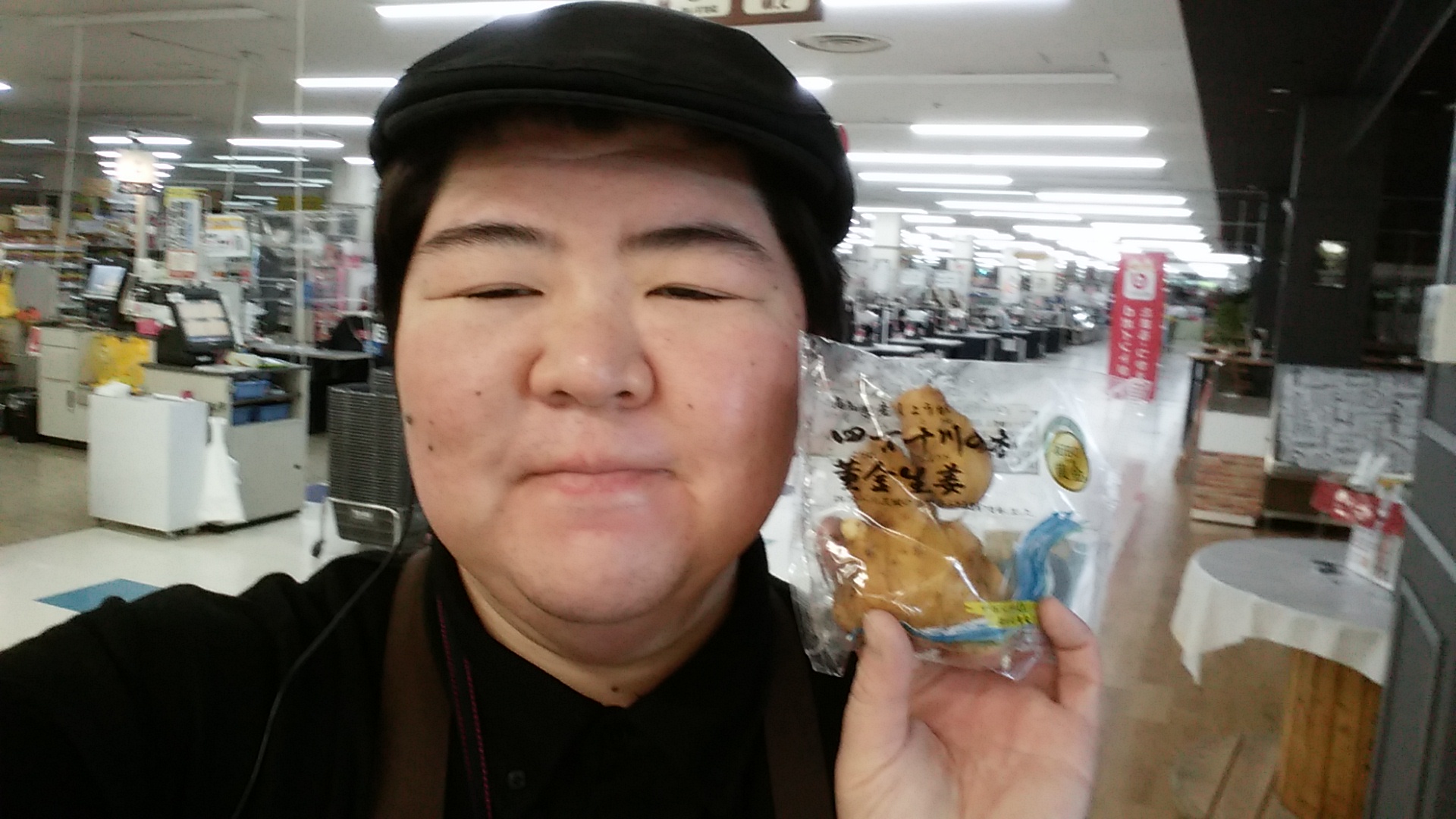 おはようございます。本日よりスーパー大均一祭です。野菜コーナーでは、高知産四万十川の香り生姜1袋を99円の均一価格にてご提供。是非ご利用くださいませ。