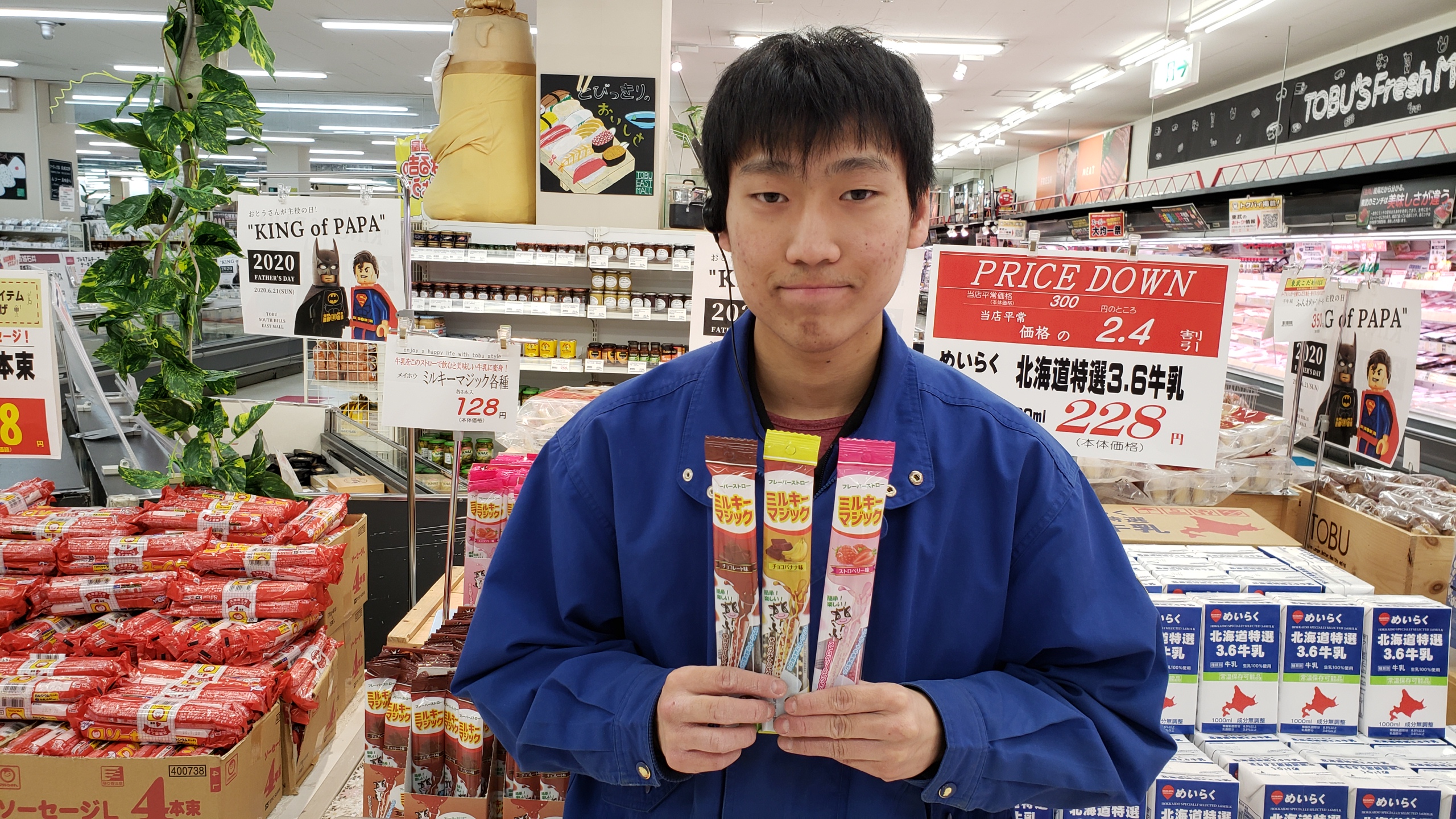 デイリーコーナーからは!もっと!牛乳を! メイホウ ミルキーマジック このストローで牛乳を飲むとストロベリー味!チョコレート味!チョコバナナ味になりますよ!価格は3本入りで128円です。是非お買い求めくださいませ。