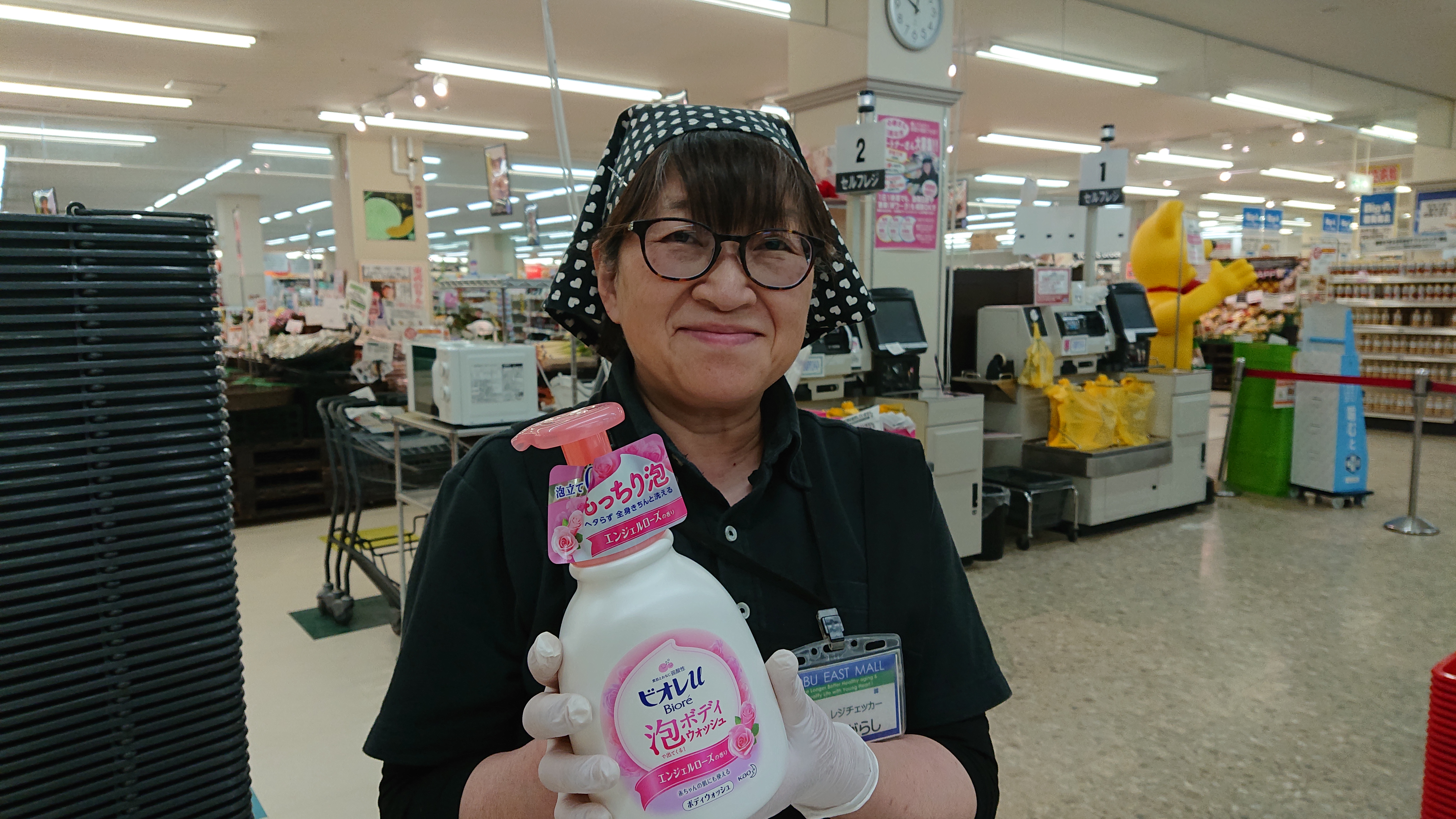 おはようございます。家庭消耗品担当小西です。本日のおすすめ商品は、ビオレU泡ボディソープです。泡タイプなので洗い心地もすごく良いです。