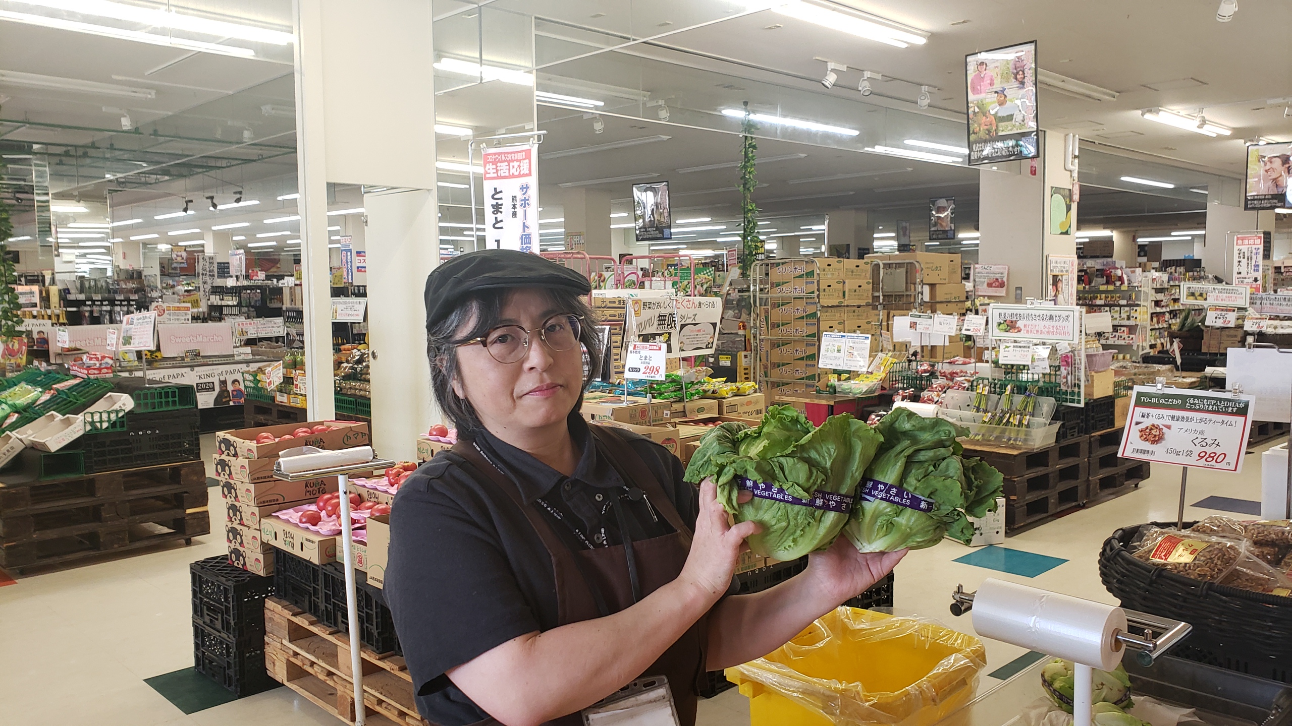 青果コーナーのオススメ!北海道産レタスがお買得!1玉99円にて販売します。サラダにどうぞ