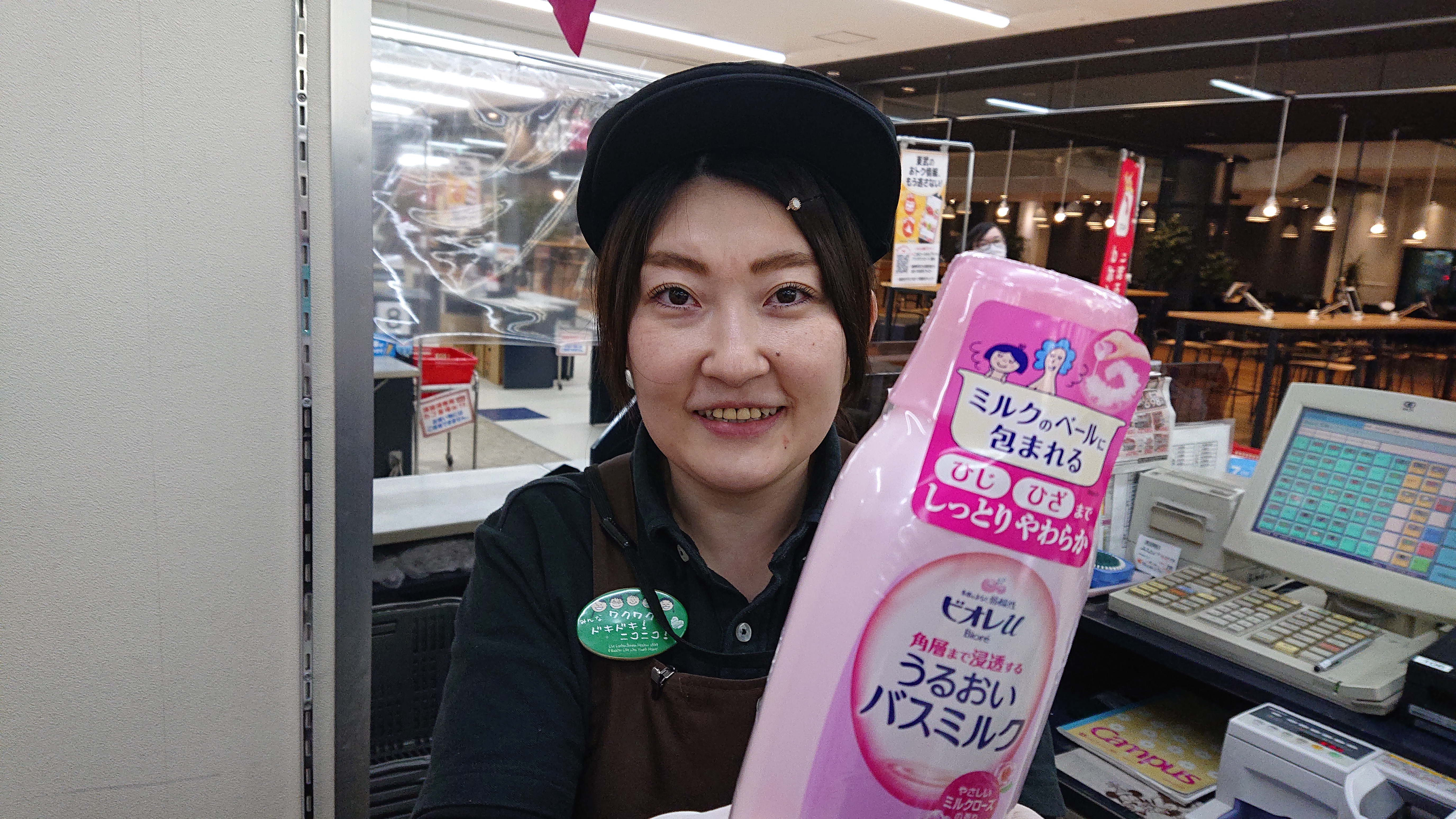 おはようございます。家庭消耗品担当小西です。本日のおすすめ商品は、ビオレUバスミルクです。お肌しっとりバスミルクおすすめです。