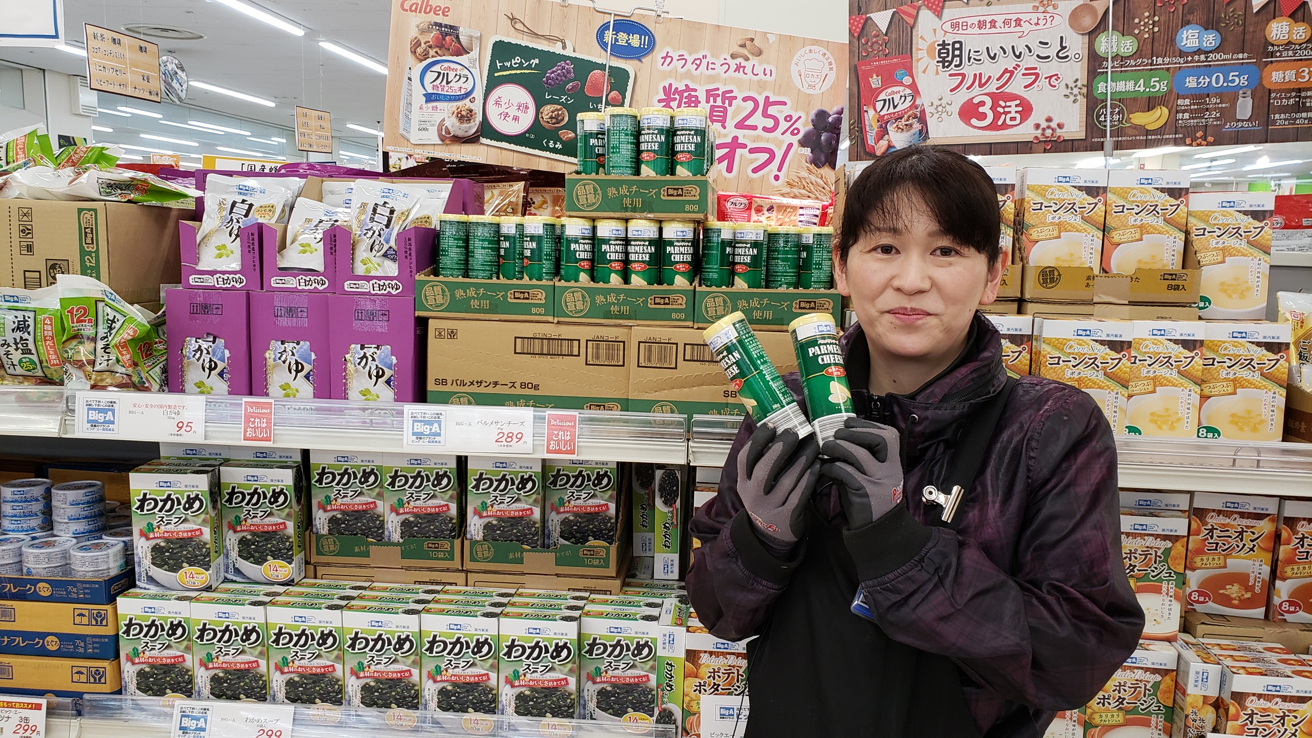 食品コーナーからは!おすすめ!人気のBig-Aからパルメザンチーズです。熟成チーズ使用。価格は80g入りで289円てす。是非お買い求めくださいませ。