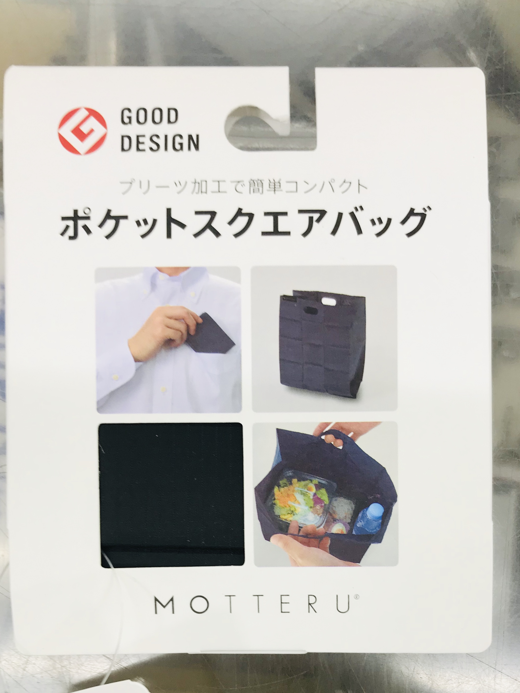 グッドデザイン賞を受賞したポケットスクエアバッグです。格子状にプリーツ加工を施し、簡単にカードサイズ相当まで折りたたむことが可能です。シンプルなデザイン、かつシャツの胸ポケットにも入るコンパクト設計なので、今まで使用してこなかった男性でも使いやすいアイテムとなっております。レジ袋と同じガゼットマチ仕様のためマチも広く、コンビニのお弁当も入ります。店舗のオリジナルグッズや成約記念品など幅広くご提案頂けます。
