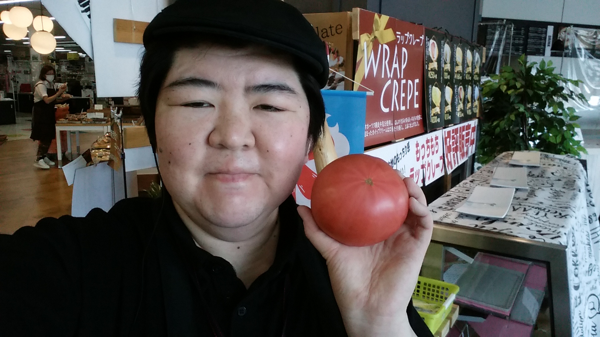 おはようございます。青果担当奥瀬です。本日はスーパー大均一祭です。美瑛産 大玉とまと 99円です。是非ご利用ください。