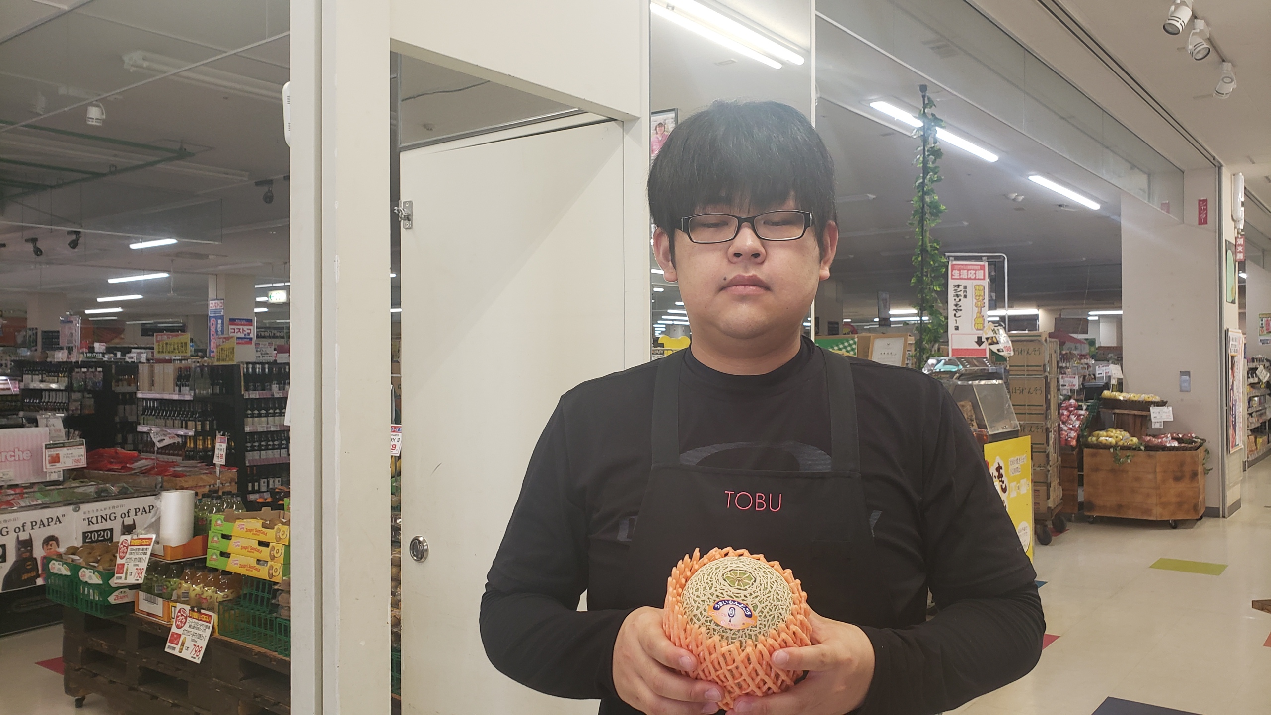 青果コーナーのオススメ!茨城産赤肉メロンが安い。1玉498円にて販売します