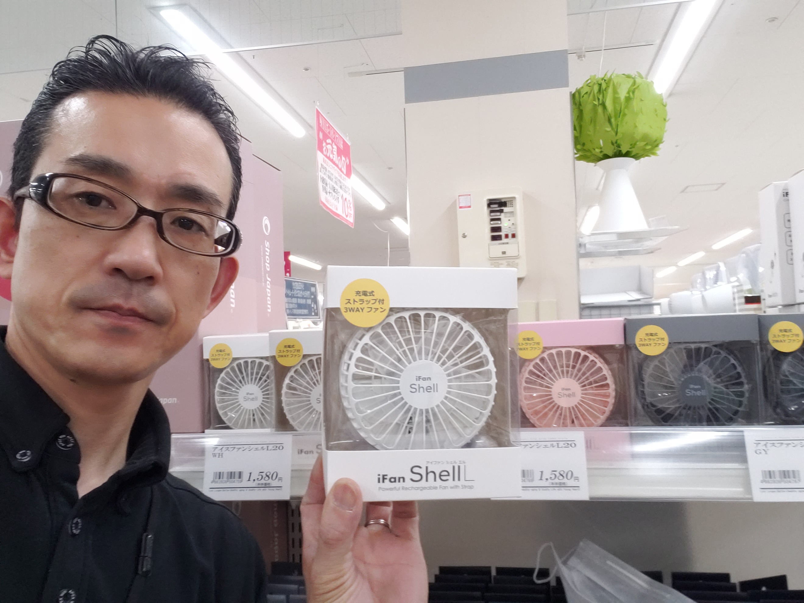 家電コーナーからは!充電式パワフル&静音コンパクトファン様々なシーンで使える3wayタイプ!充電時間約4.5時間!連続使用時間約8.5時間!アイファンシェルL カラーは3色価格は1580円です!是非お買い求めくださいませ。