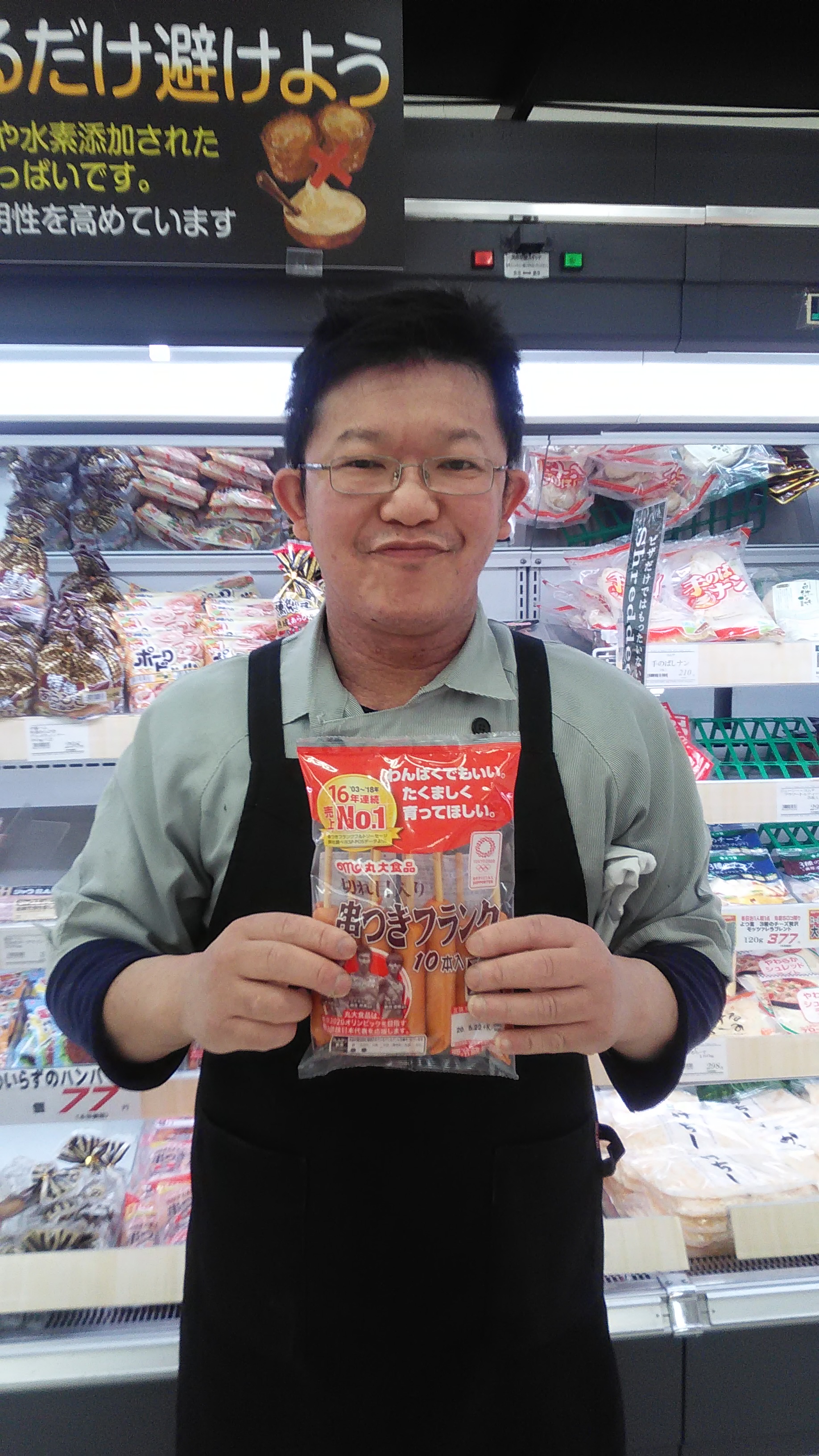 おはようございます。ミート担当近藤です 。あらかじめ、食べやすいように切れ目を入れて串にさしたフランクフルトです。バーベキューや鉄板焼きにも便利にお使いいただける、行楽商品にもピッタリ商品です。ファミリーやグループの集まりに最適な10本入りです。